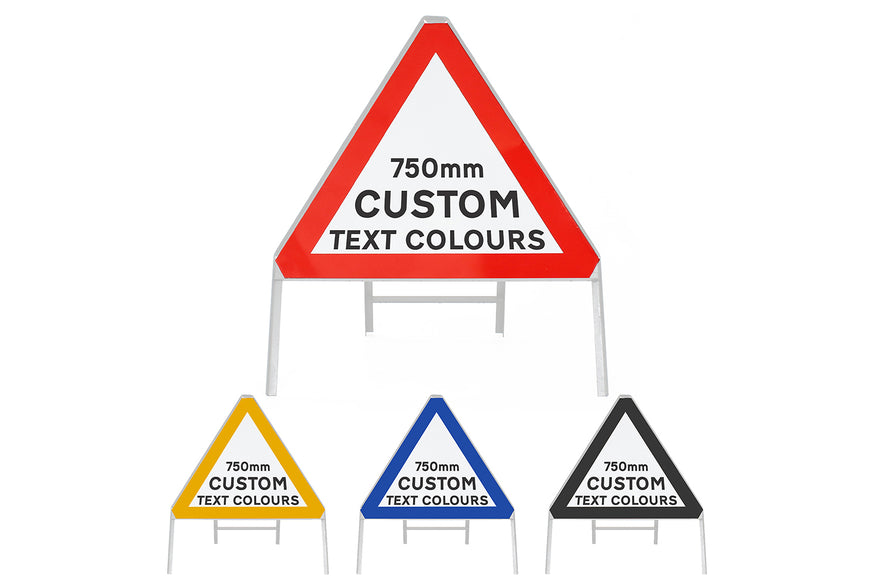 Consider the size of the temporary sign needed. 600x450mm signs are usually used on footpaths for pedestrians, and 1050x750 are usually for motorists. Triangles and squares tend to be 750mm.