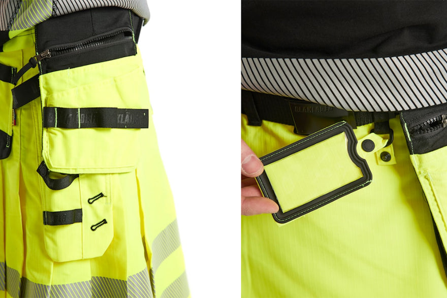 Although these hi-vis kilts may seem to be “statement clothing”, they offer massive practicality and functionality, with holster pockets to keep your tools and equipment in and EN ISO 20471 compliance, meaning you can wear selected styles on-site where a class 2 reflectivity is required.