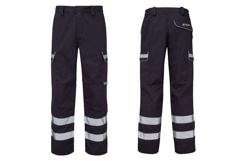 As they’re often not EN ISO 20471 compliant, (the European standard for high-visibility work clothing ), our range of navy blue hi-vis work trousers is perfect for low-risk work environments such as some warehouses, and recycling plants. They are popular amongst workers like waste workers and car mechanics, as well as for general trades that need to be visible, but don't require classed hi-vis.