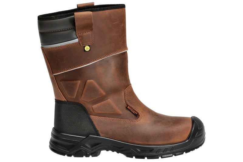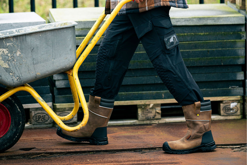 Rigger boots are pull-on safety boots that go roughly a third of the way up the leg and include a steel toe cap. They get their name due to use by workers on offshore oil rigs, but they are popular among manual workers and on construction sites. Rigger boots are fantastic for avoiding slips on wet surfaces and their height offers extended ankle protection. Insulating lining is another bonus, keeping the lower leg warm in colder conditions.