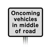 'Oncoming vehicles in middle of road' Supplementary Plate - Post Mount Dia 575 R2/RA2