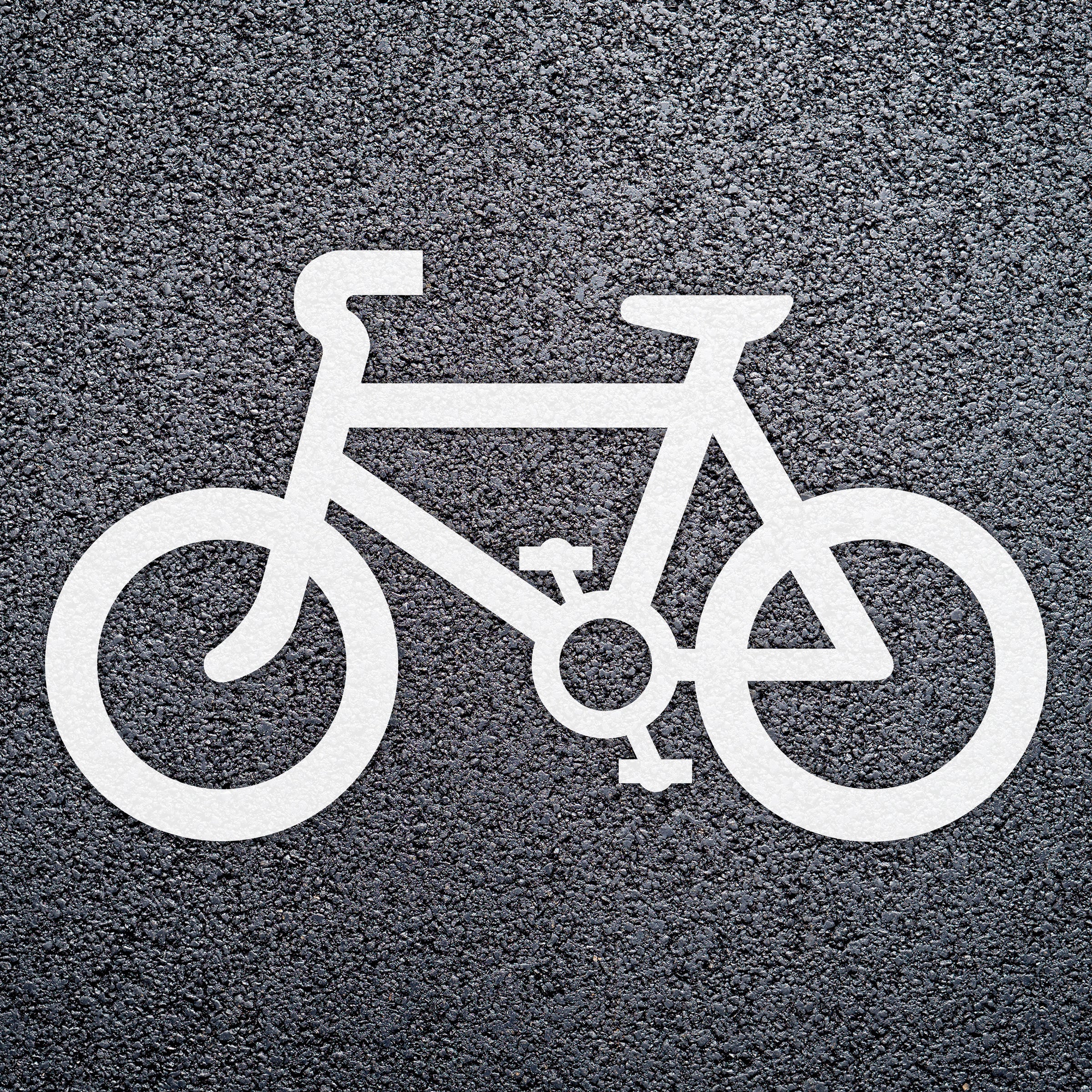This bike road marking is used to indicate that an area is part of a cycle route, this could be both on-road or off-road in cyclists only areas. For use on road, this symbol is most commonly seen along the road’s edge where a specific area is designated for pedal cycles. You will also commonly find this symbol at traffic lights in front of the stop line, indicating a safe area designated for cyclists to stop at lights.