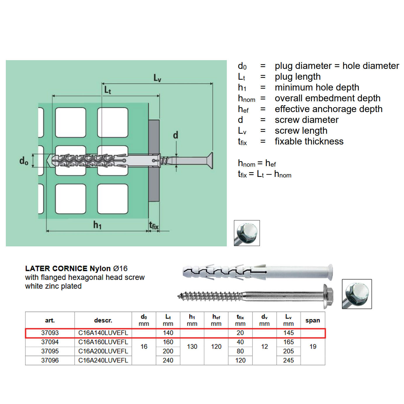 The fixing requires a total hole depth of 140mm at 16mm in diameter. Installation of these fixings could not be easier.