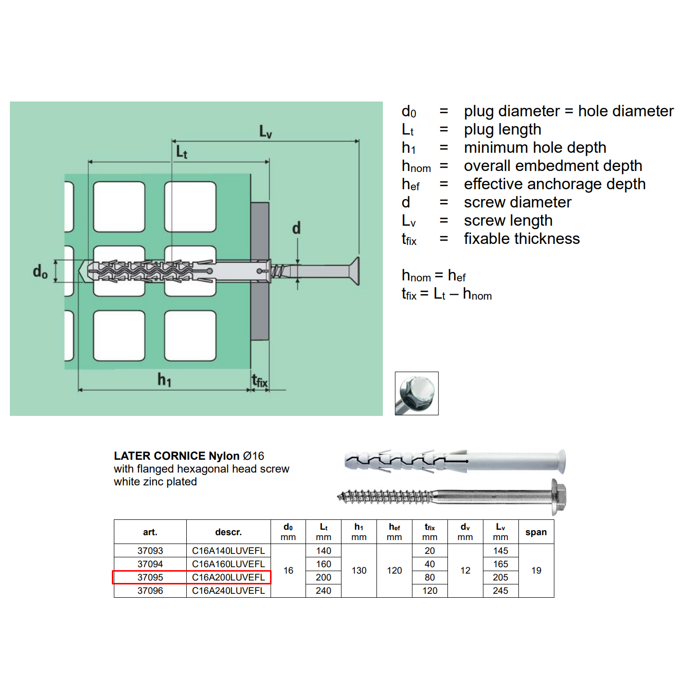 The fixing requires a total hole depth of 160mm at 16mm in diameter.
