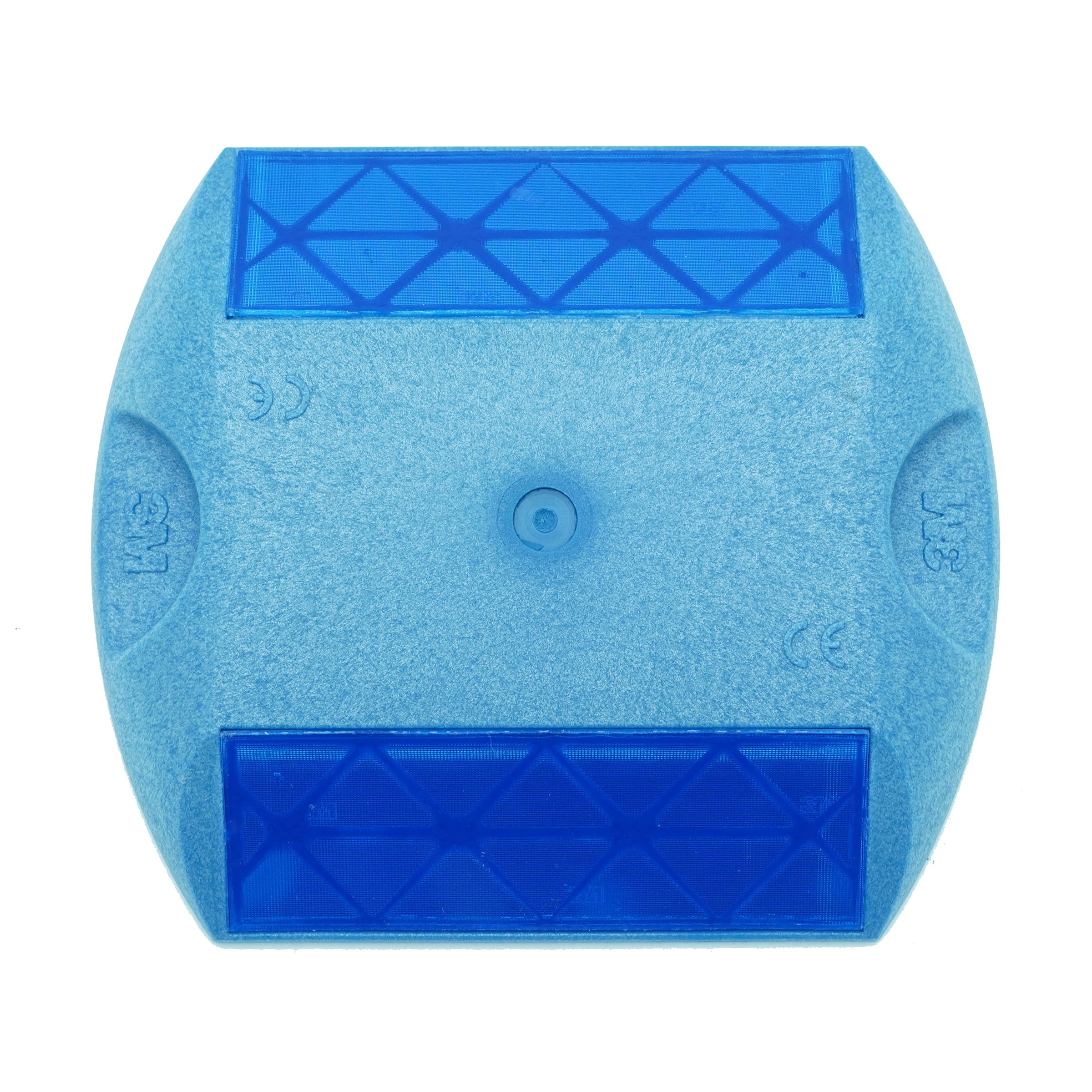 These genuine 3M blue cats' eyes feature blue reflectors and a blue body, making them ideal for small airfields, airports, and aerodromes where illuminated markers are not required. The reflectors on this cat's eye are placed on either side of its body, making it illuminate in the lights of approaching vehicles when approached from either direction.