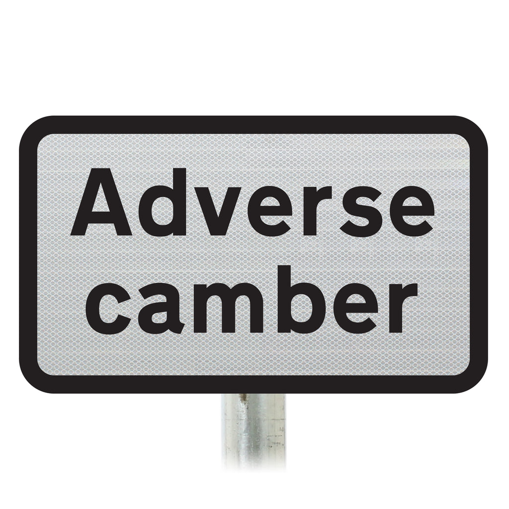 The Adverse Camber supplementary sign is most commonly used alongside signs 512 and 513. It indicates to drivers that the camber of the road may have a negative impact on the handling of their vehicle, or load stability.