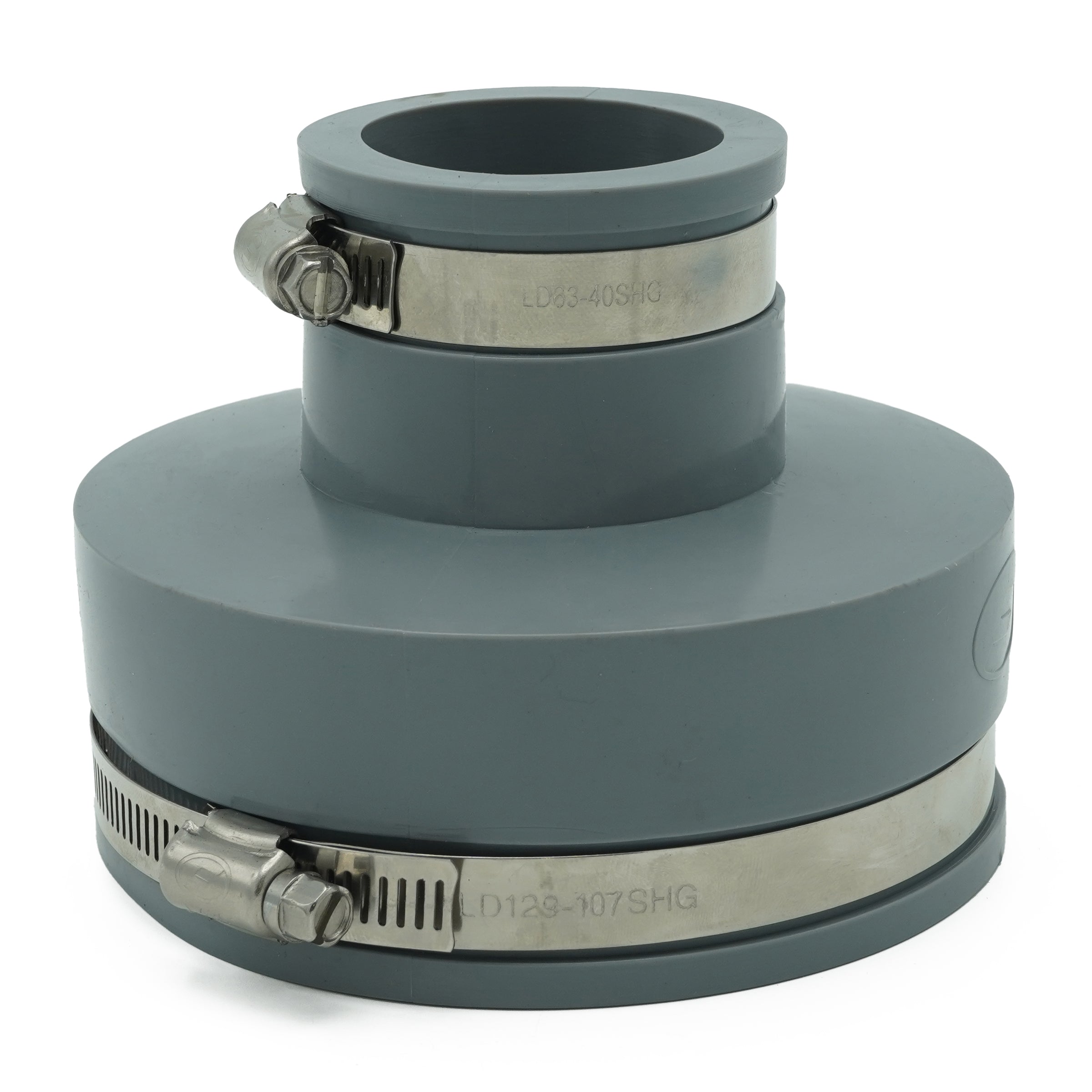 Reducer couplings (or adaptor couplings) make it easy to link pipes of different diameters or materials. We offer a range of adaptors to connect pipes to standard 110mm underground sewage pipes.