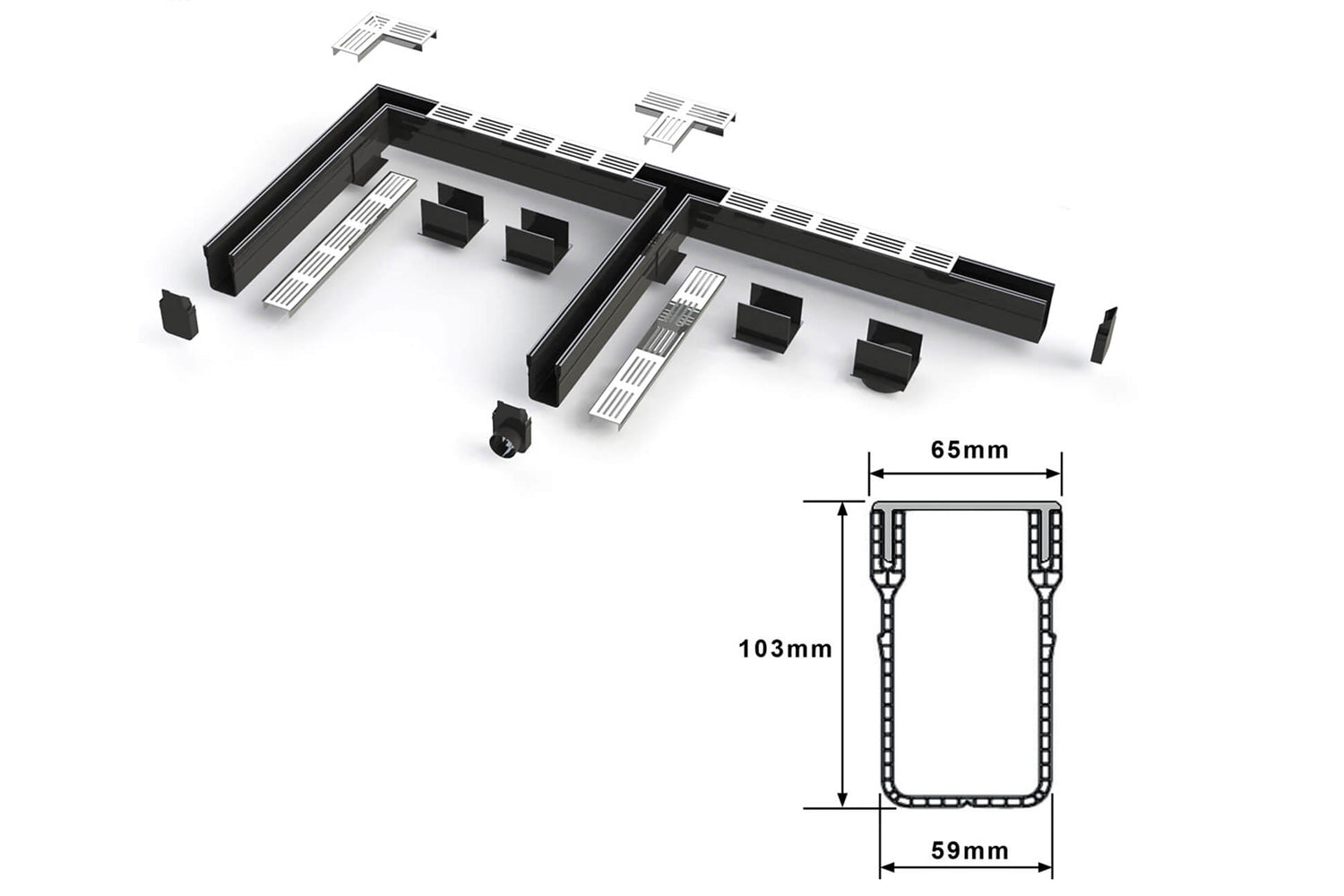 Please note: Each section of Alusthetic Threshold Drainage Channel should be connected using a channel connector which will also help to stabilise the channel during installation. Ends should be capped off using an end cap or outlet. We recommend using a PVC solvent weld to fuse your channels and connectors together. Although not essential (as your system will be slotted together using channel connectors), it can be useful to plug any gaps and ensure your channels are one seamless length of leak proof, water tight PVC.