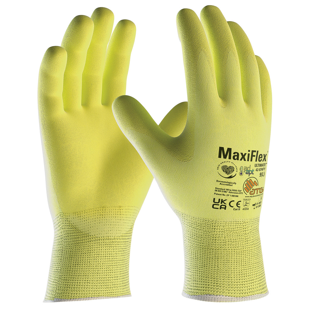 ATG MaxiFlex Ultimate Gloves 42-874FY Palm Coated, Yellow Dry Handling