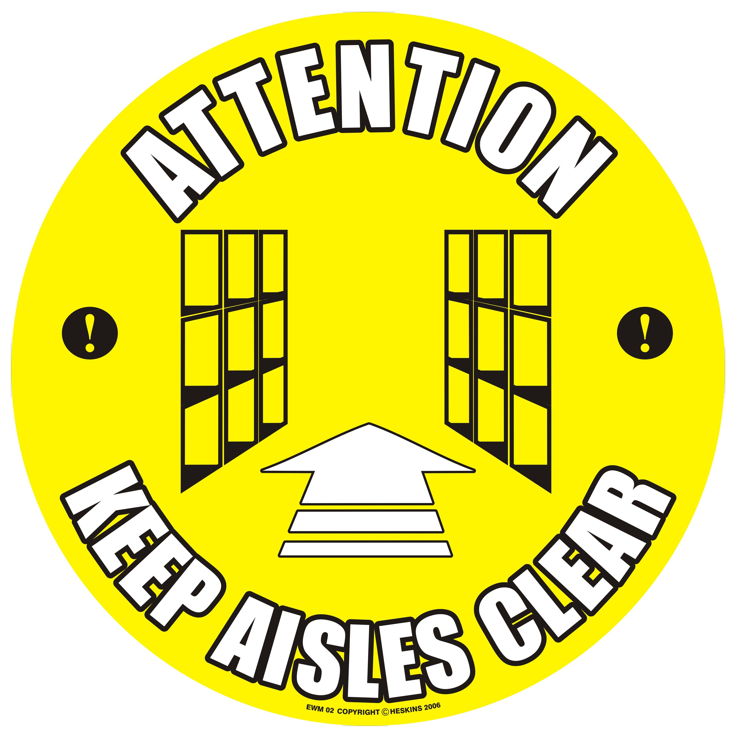 “Attention Keep Aisles Clear” Floor Sign - Self Adhesive