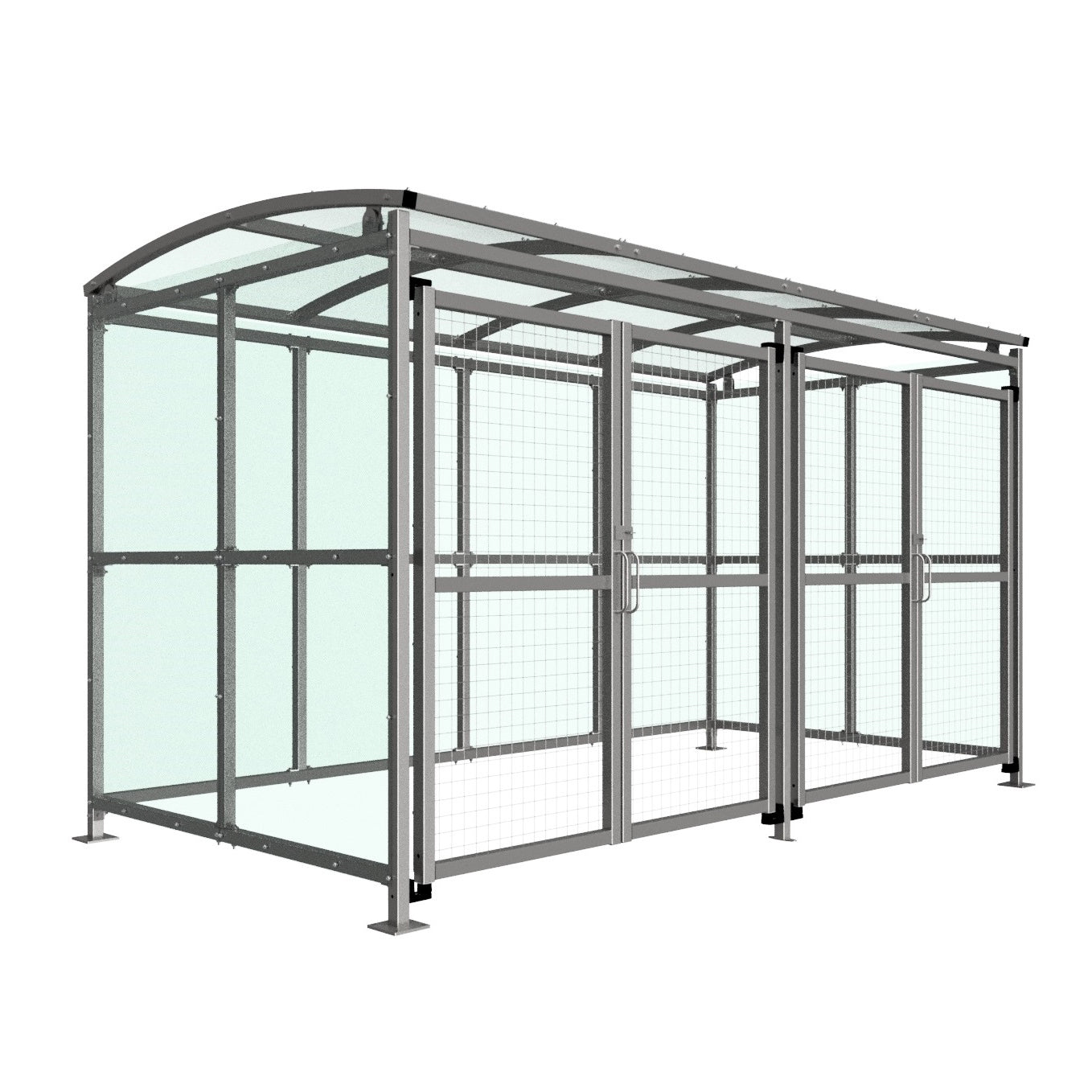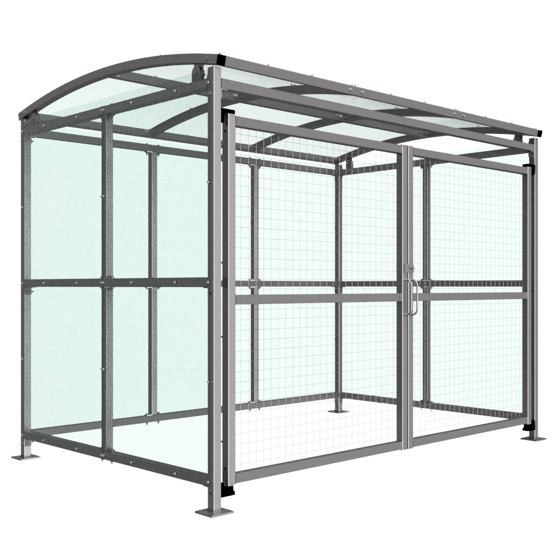 - Mesh Gate: A padlockable mesh gate on the front of the shelter allows views inside the shelter without access.