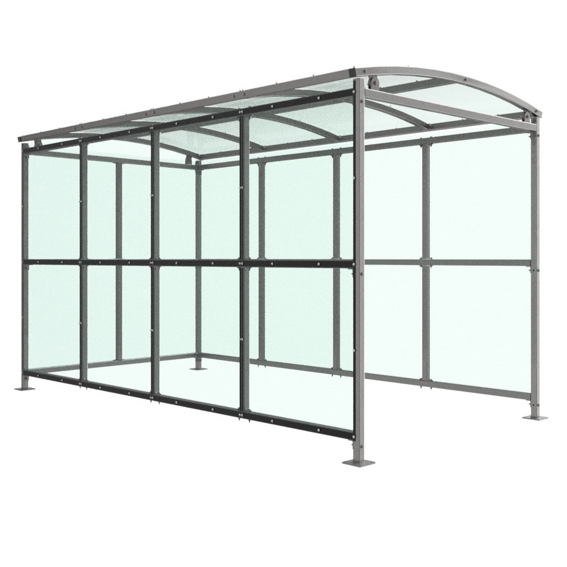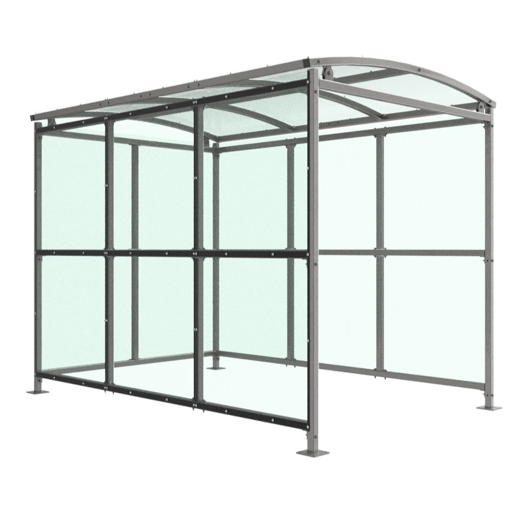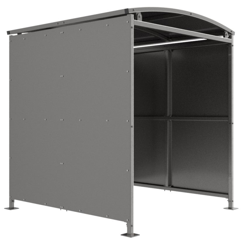 Like many of Autopa’s shelters, the Binley (and its extensions) offer two materials for their curved roofs and cladding:
