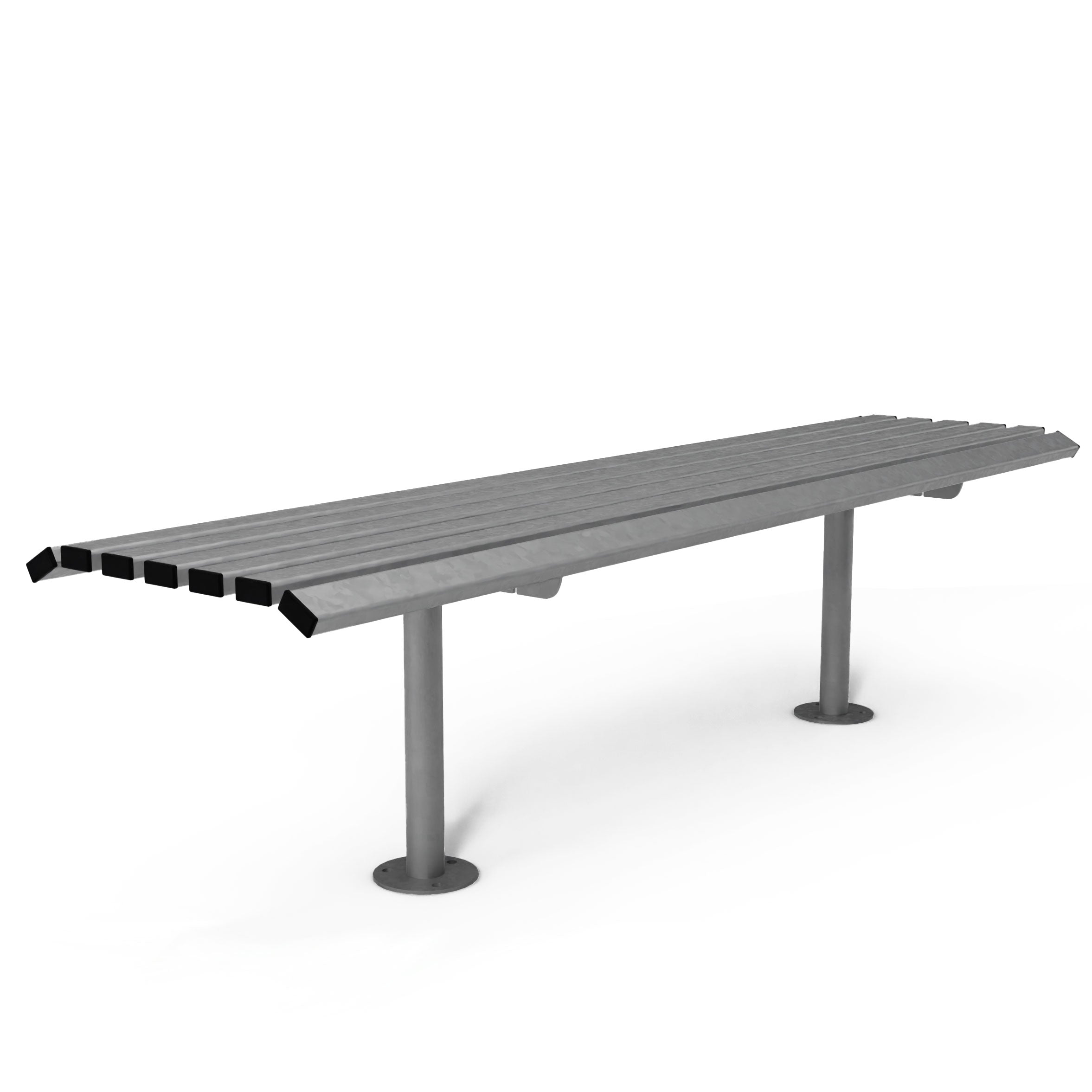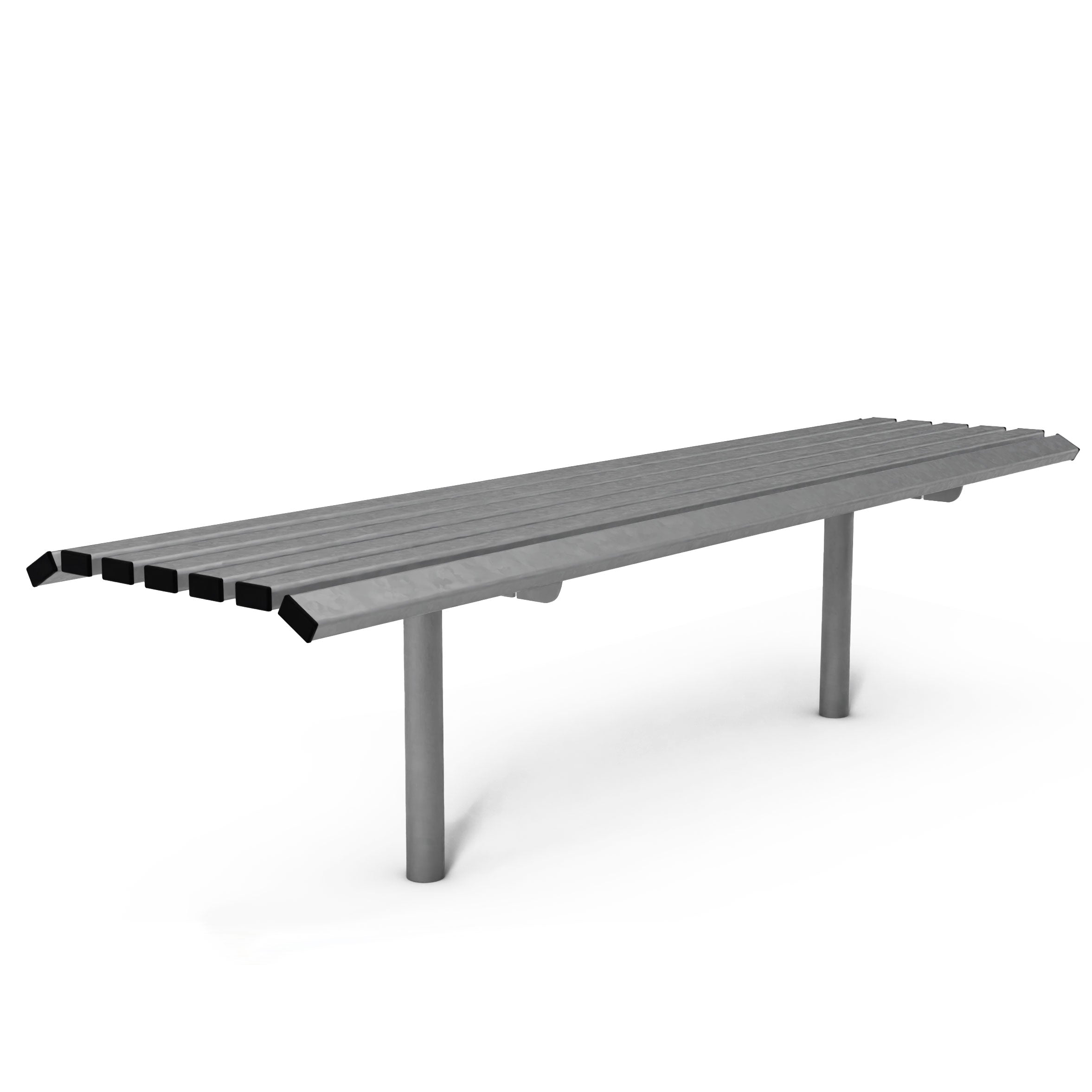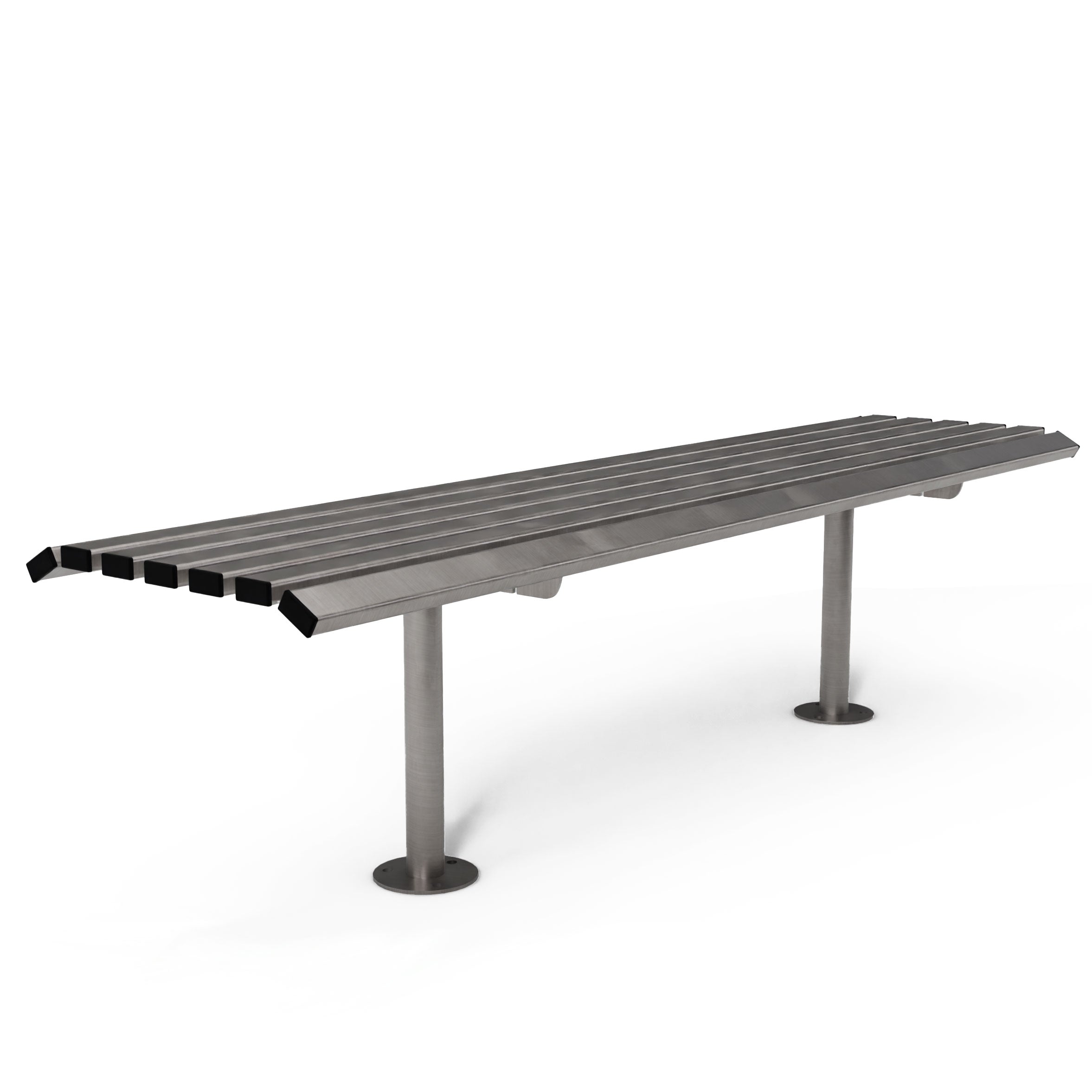 Available in both galvanised steel and stainless steel options, the bench can be cast in with concrete or bolted down for stability - galvanised products also have the option of being powder coated for a touch of colour.