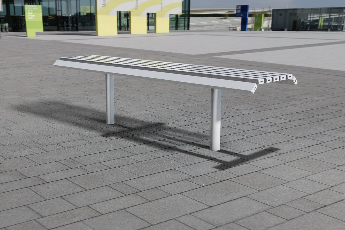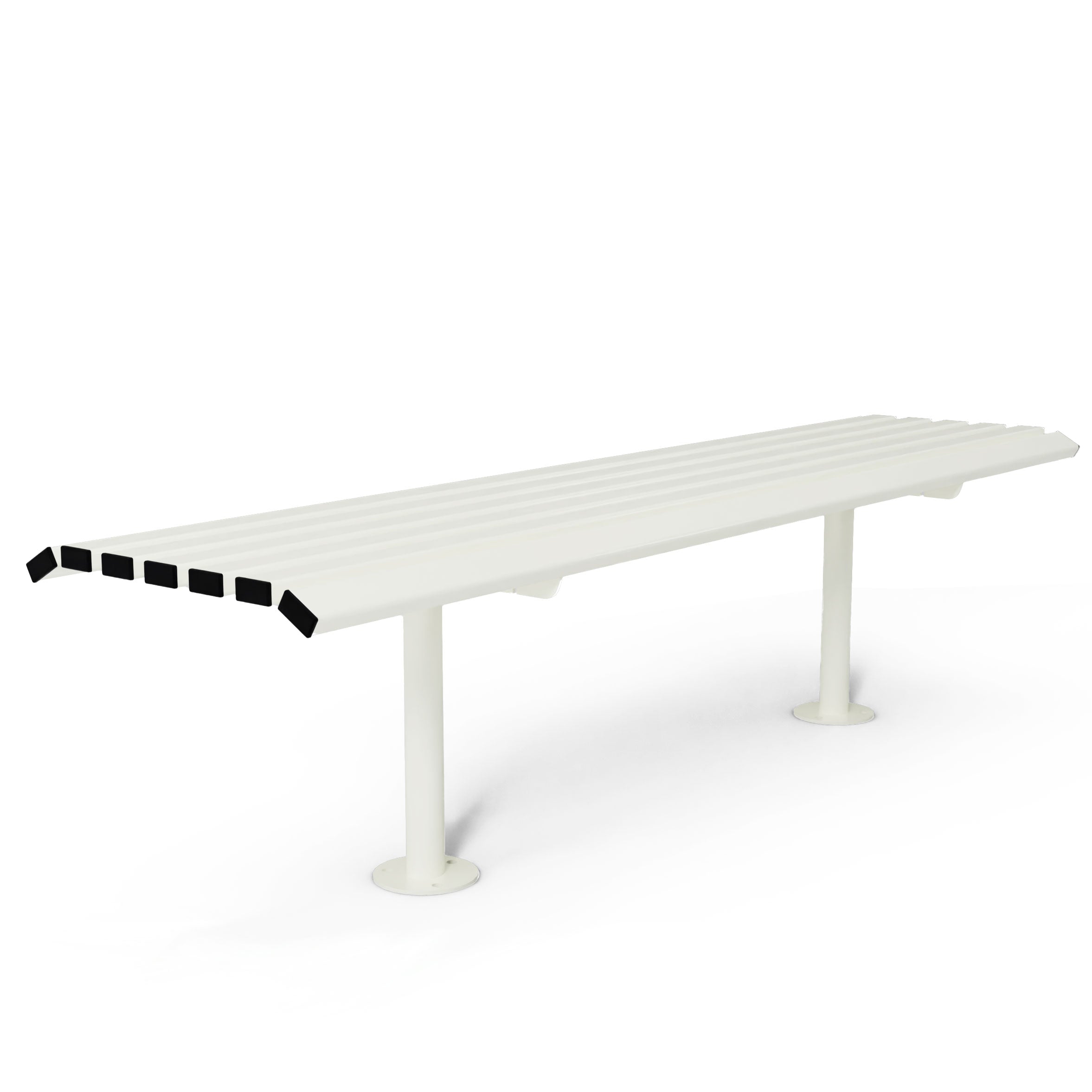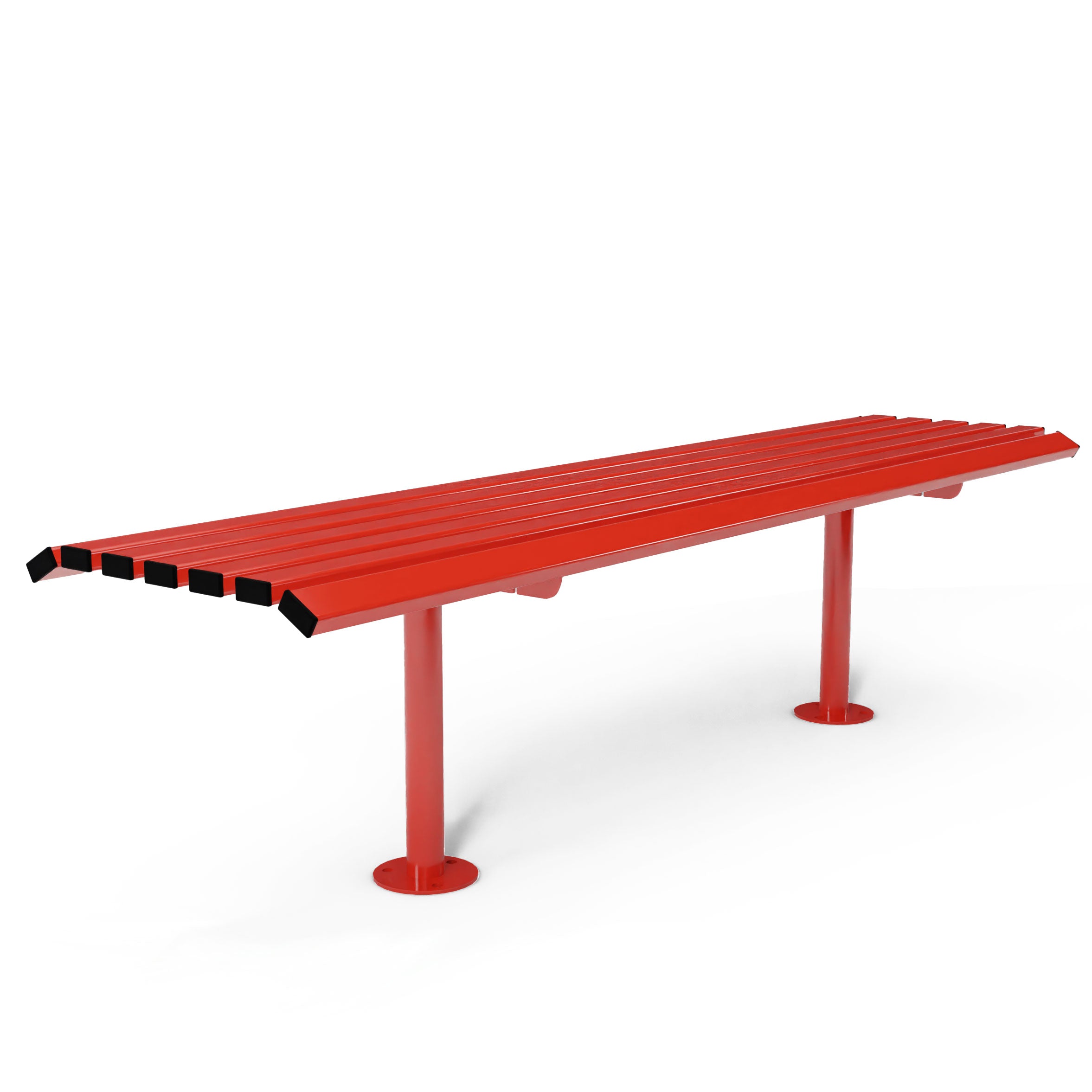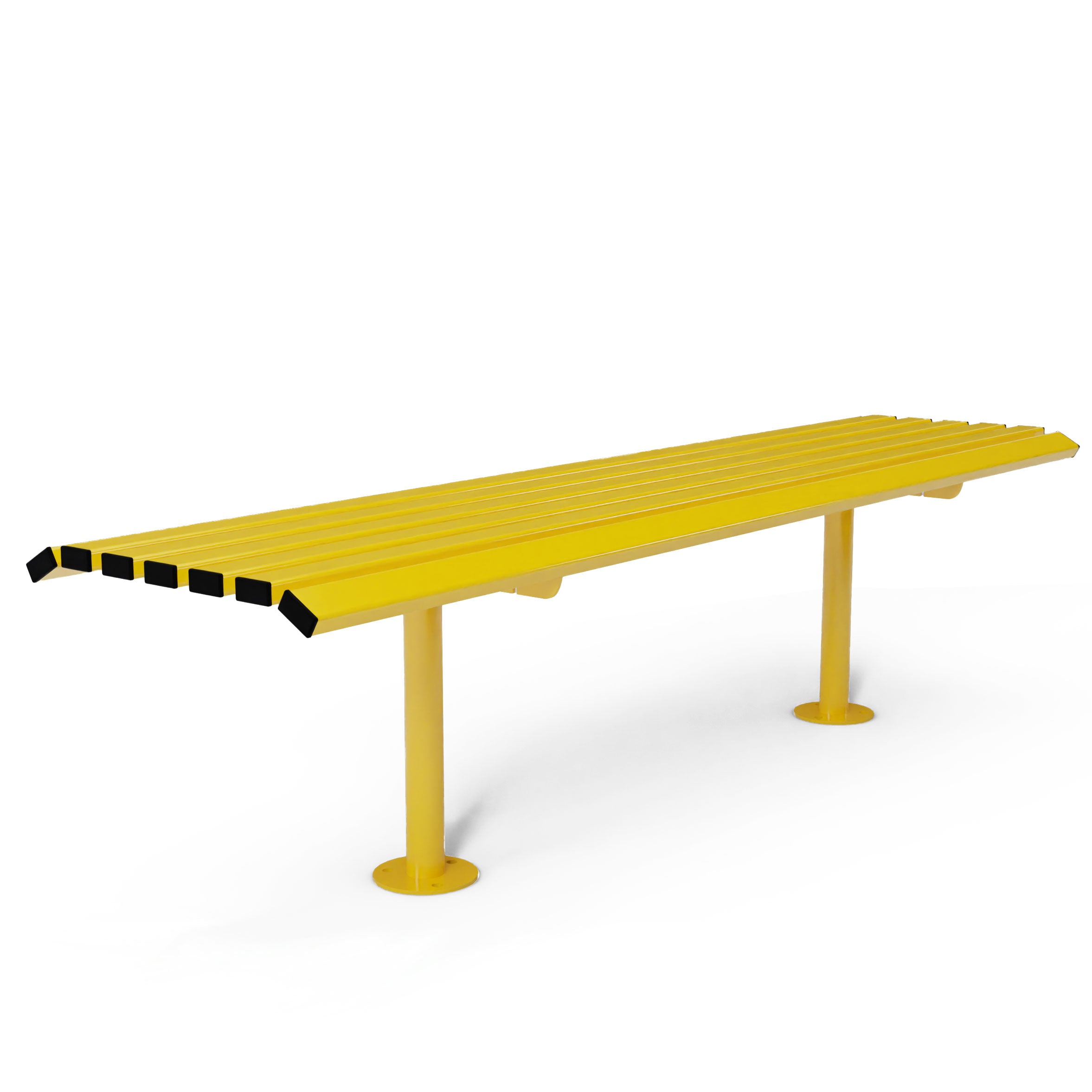 Available in both galvanised steel and stainless steel options, the bench can be cast in with concrete or bolted down for stability - galvanised products also have the option of being powder coated for a touch of colour.
