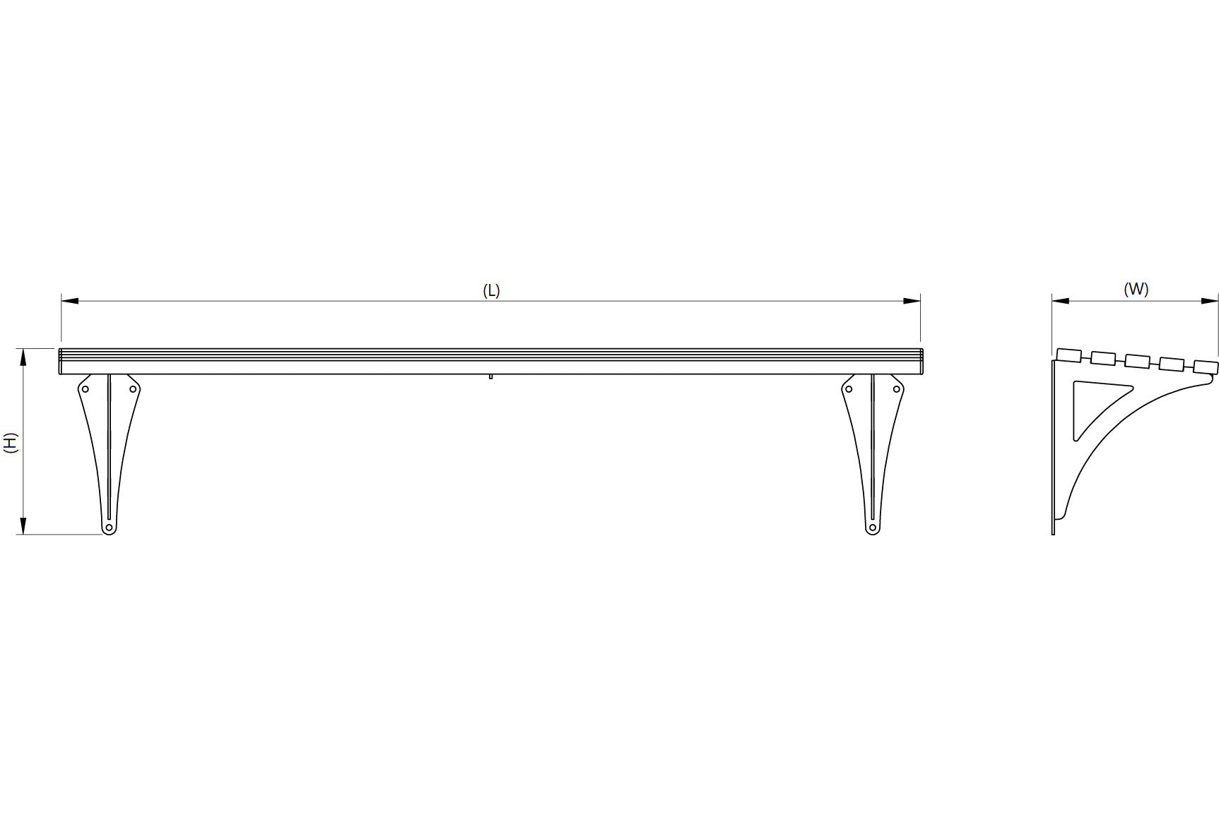 Available in either 1m or 1.8m lengths, the Haddon wall-mounted backless bench can be installed in areas that lack available space (such as high-density city centres or shopping areas), taking up less physical space than most other types of benches whilst still providing a relatively comfortable experience.