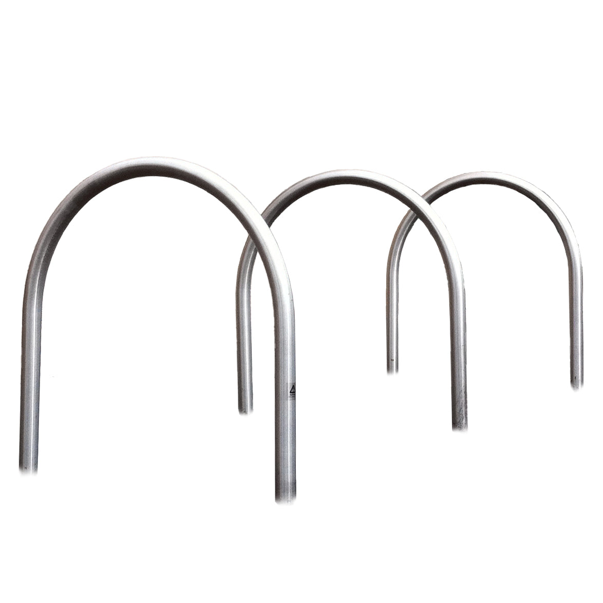 This hoop barrier's design facilitates securing cycles against the frame and wheels using the cyclist's own lock if needed. The hoop's curve ensures there is always a part of the frame at the appropriate height to accommodate the bike's crossbar. The frame, crafted from stainless steel, guarantees resistance to rust and longevity, enhancing its premium appeal.