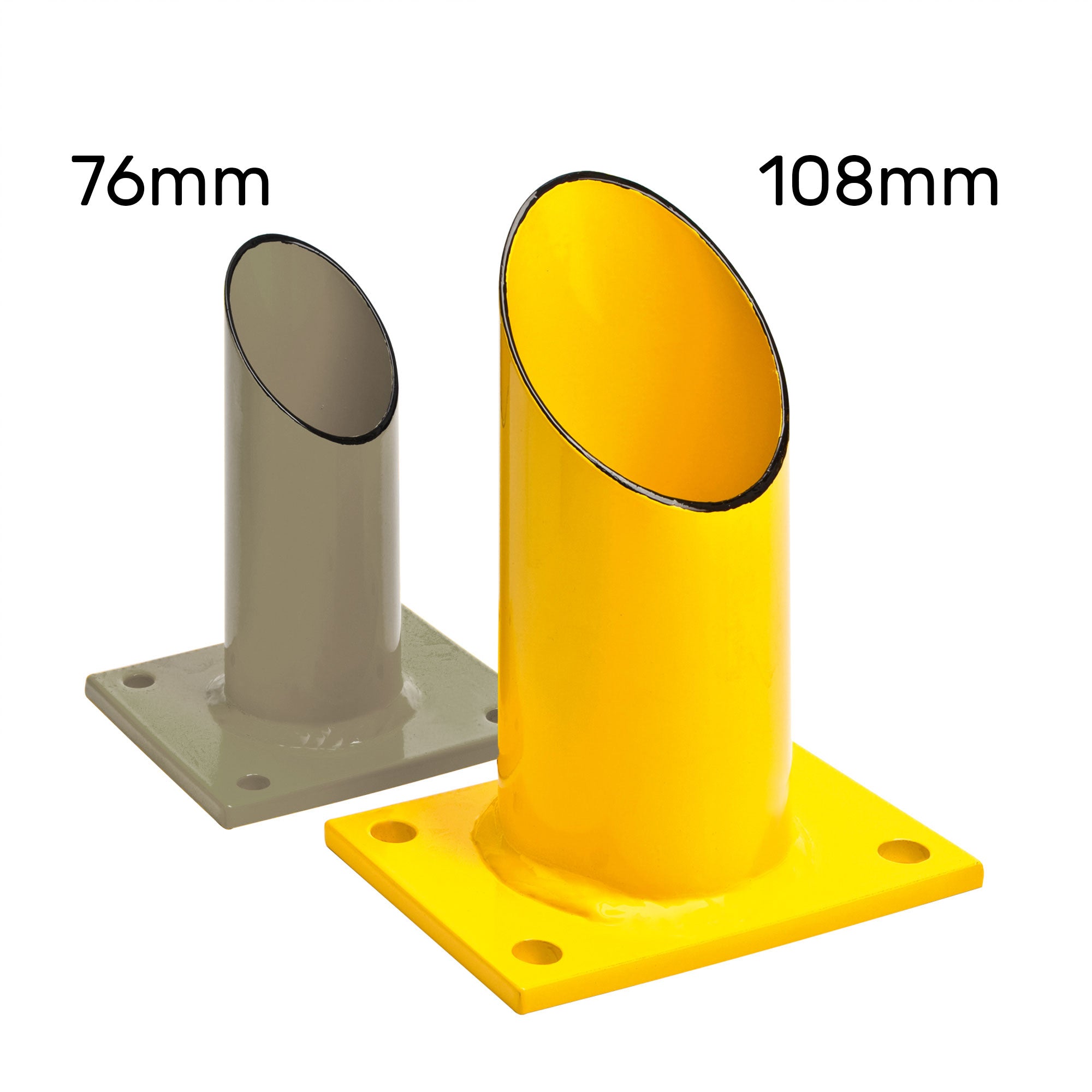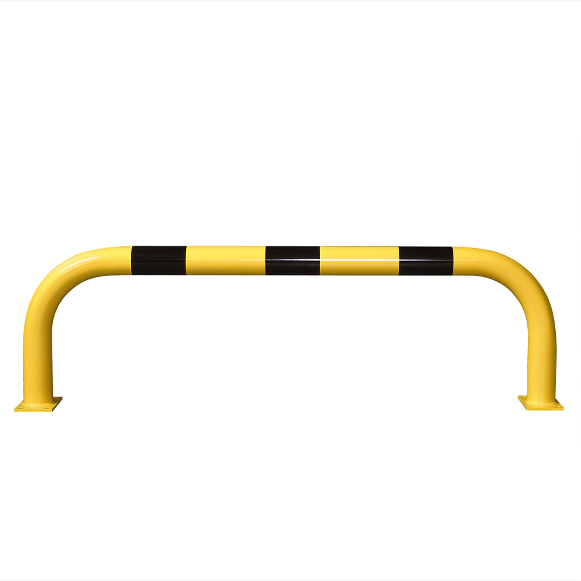 The Black Bull protection guard XL is supplied in a powder-coated yellow with black bands to provide extra contrast. This contrasting colour scheme ensures that the barrier stands out against busy backgrounds. Each hoop is secured to the floor by eight anchor bolts. Four bolts (available separately here) on each barrier end secure the rail through its 200 x 140 x 10mm base plate.