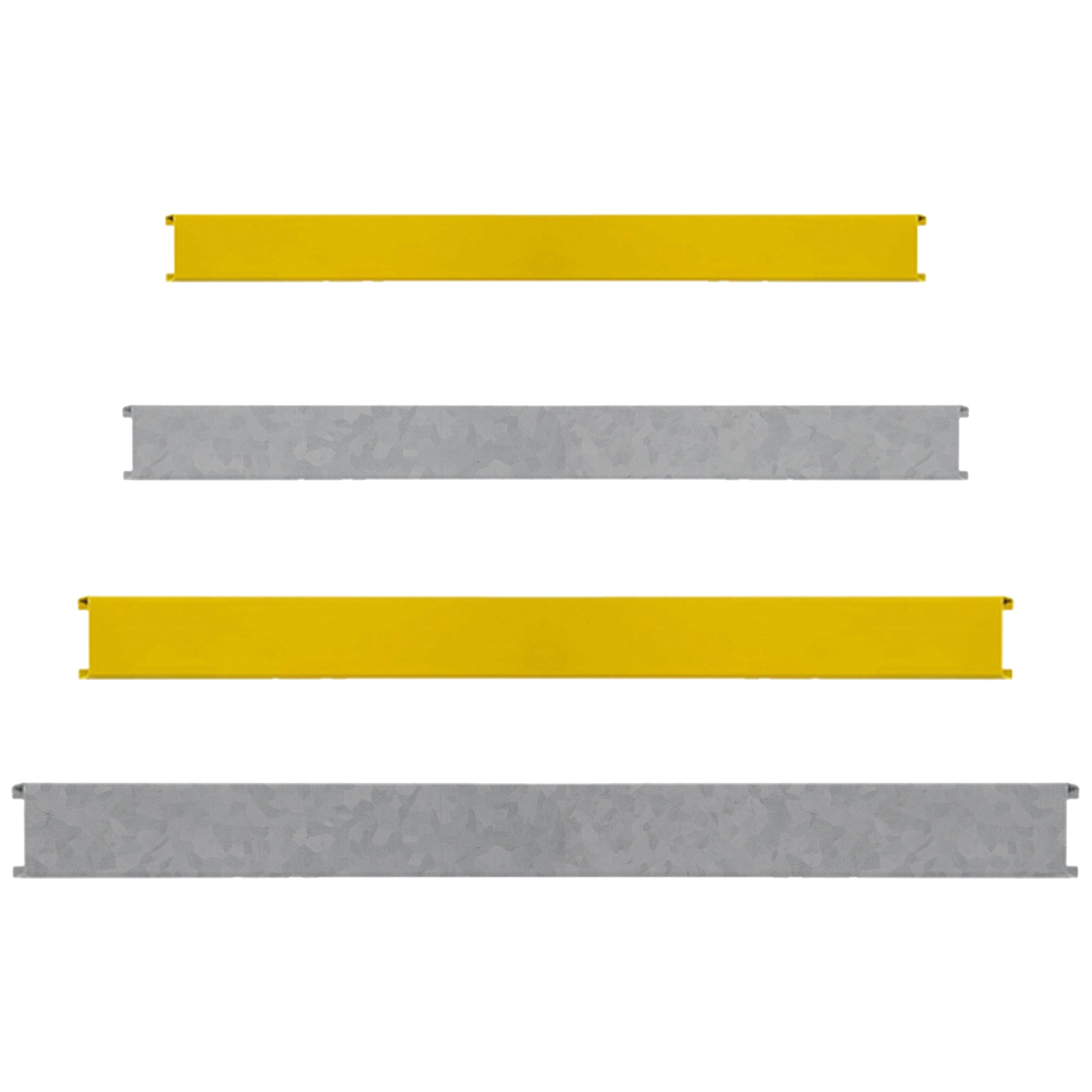 Within large semi-automated distribution warehouses, this guard rail protects conveyors and other equipment from trolley impacts.