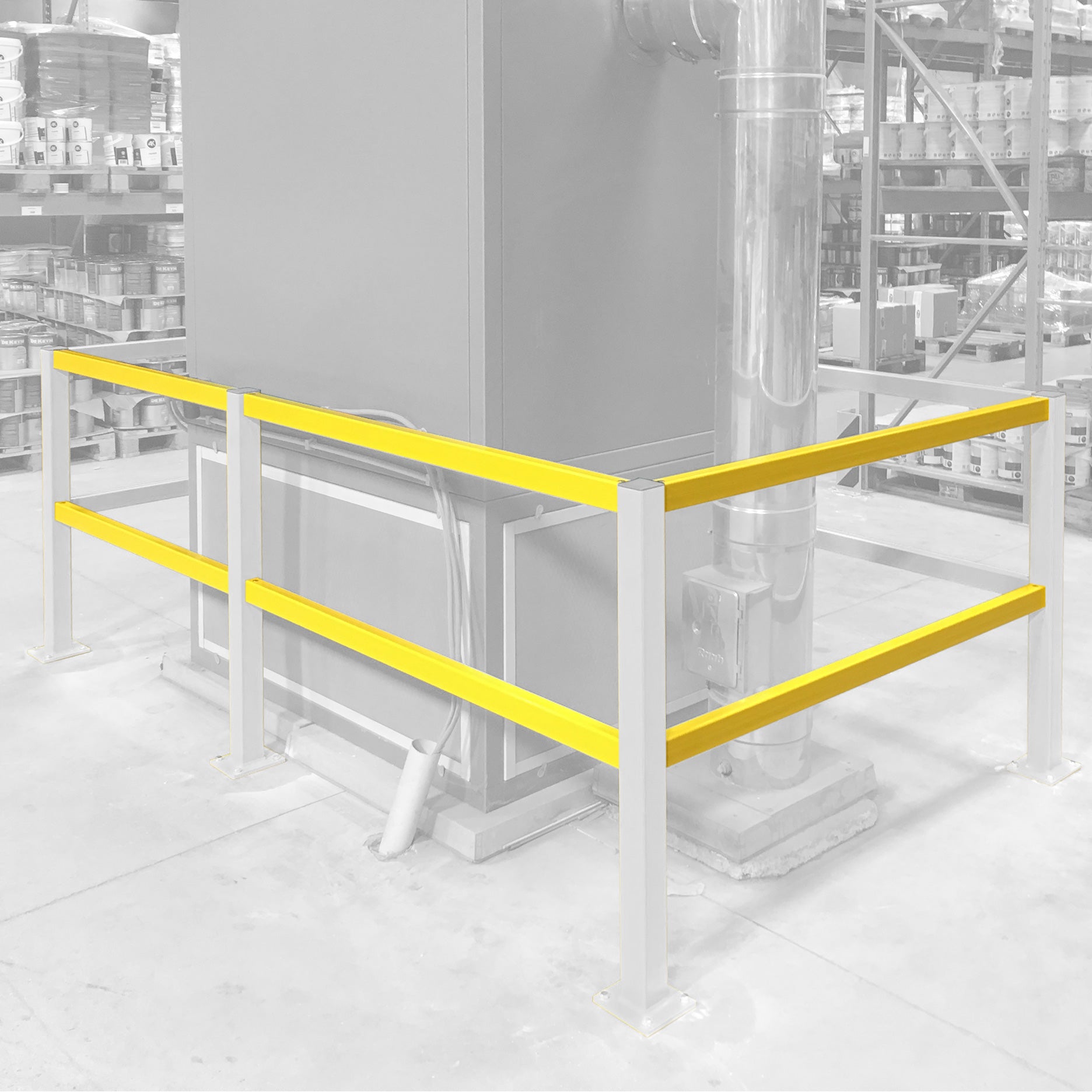 Protect forklifts and other charging stations from rogue vehicles and trolleys. A lower level beam prevents even knee-high equipment from slipping under the barrier.