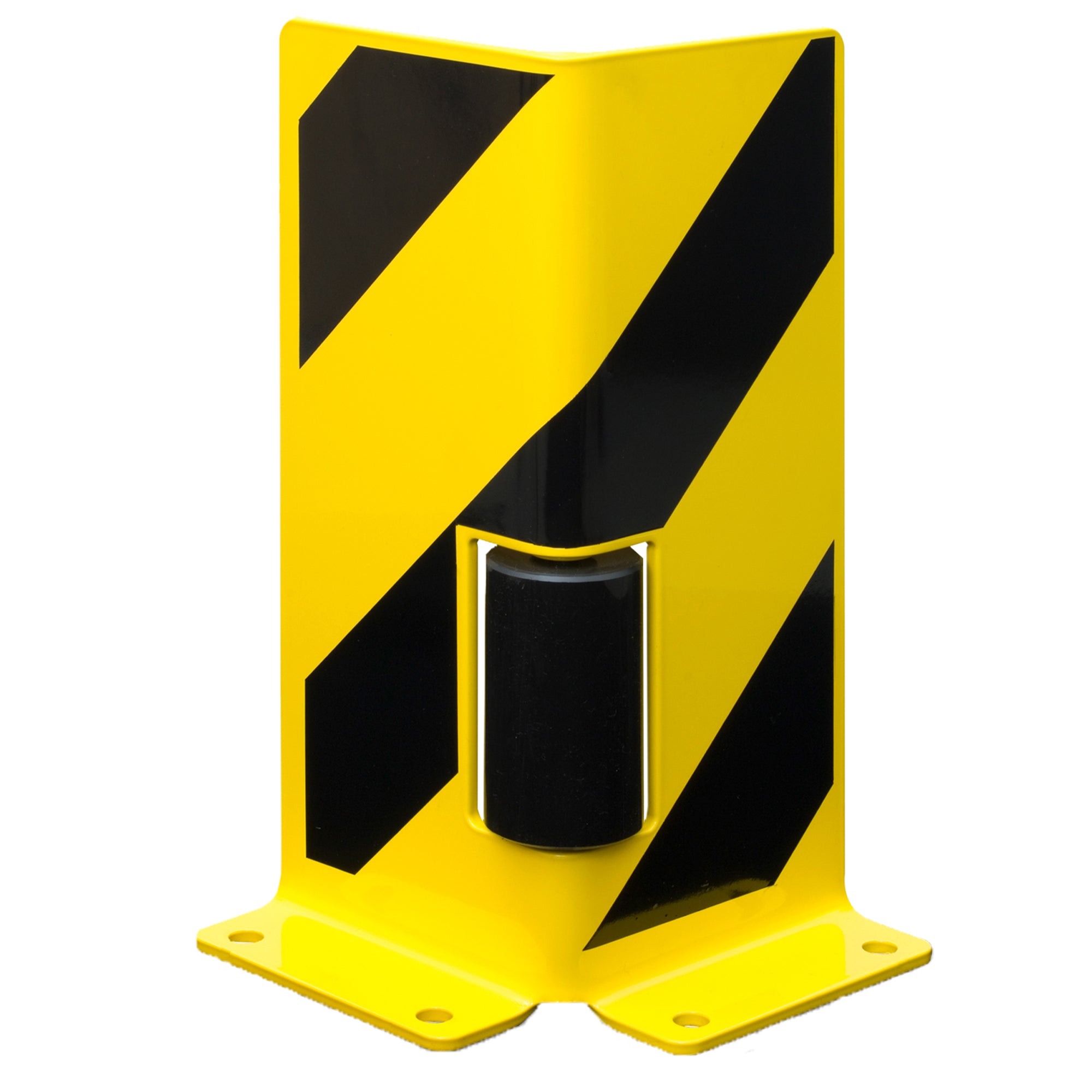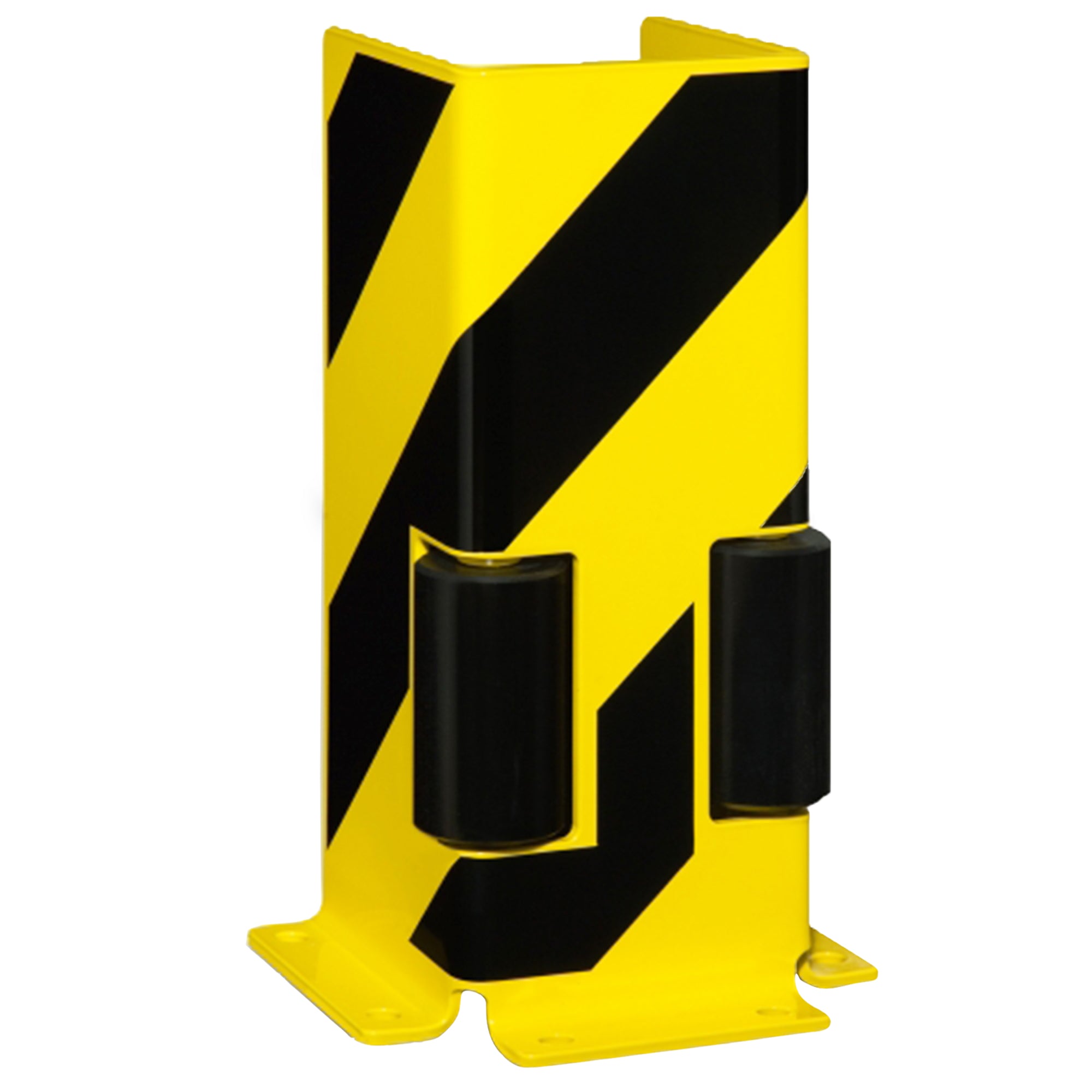 This Pallet Racking Protector With Rollers is powder coated in a bright yellow colour. The addition of black bands provides contrast. This makes the racking guards stand out regardless of how visually busy the background is.