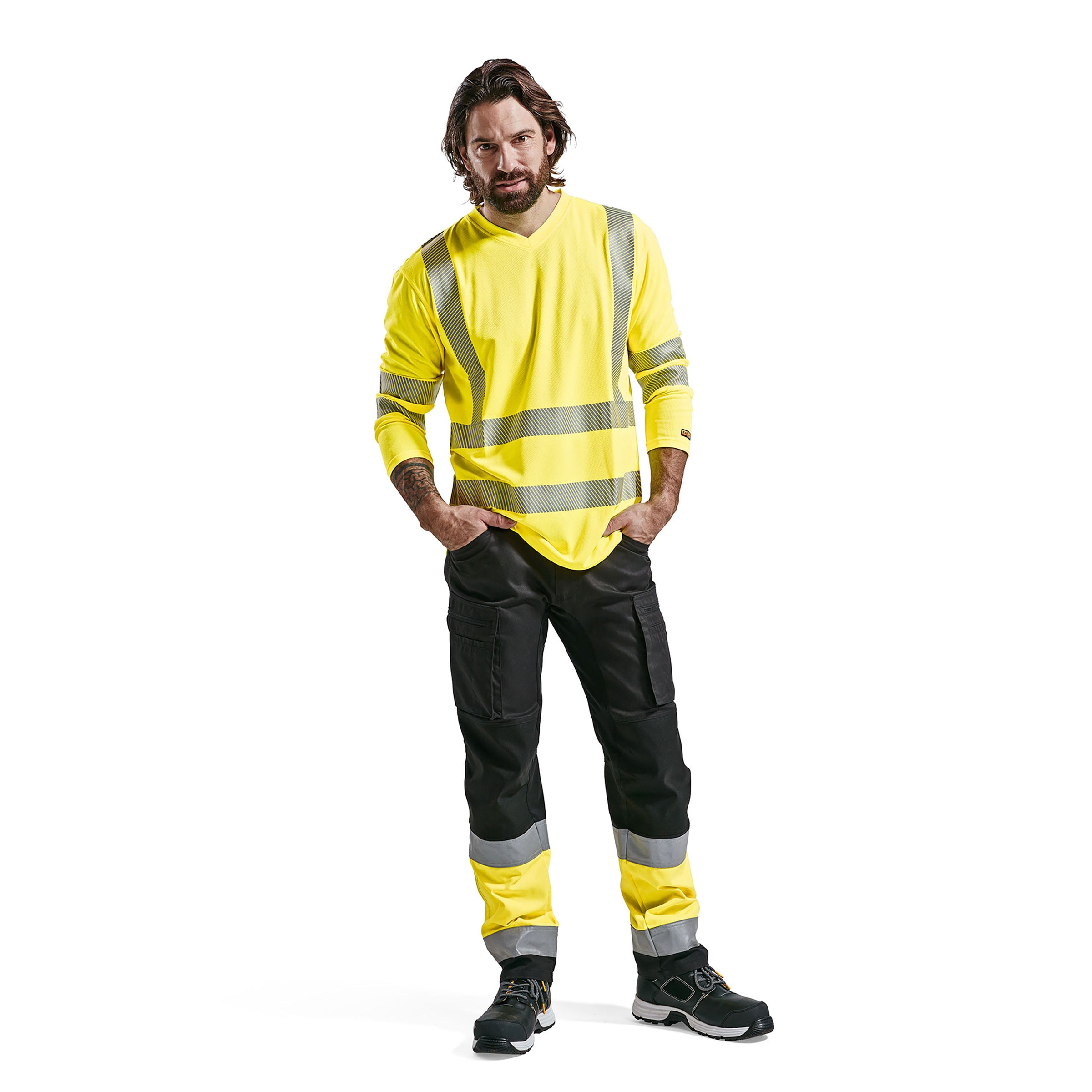 Blaklader 1551 Black/Hi-Vis Yellow Trousers With Stretch