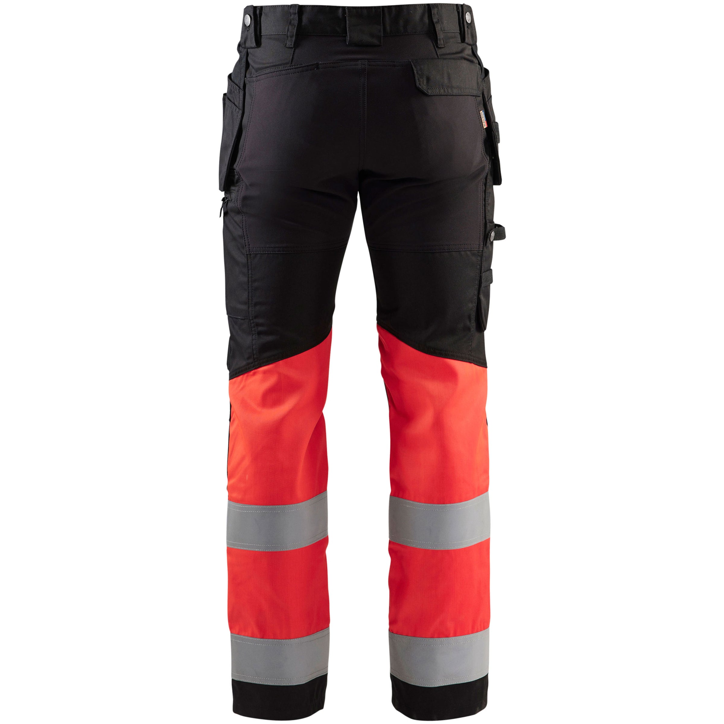 Blaklader 1558 Black/Red Hi-Vis Trousers With Stretch With Holster Pockets