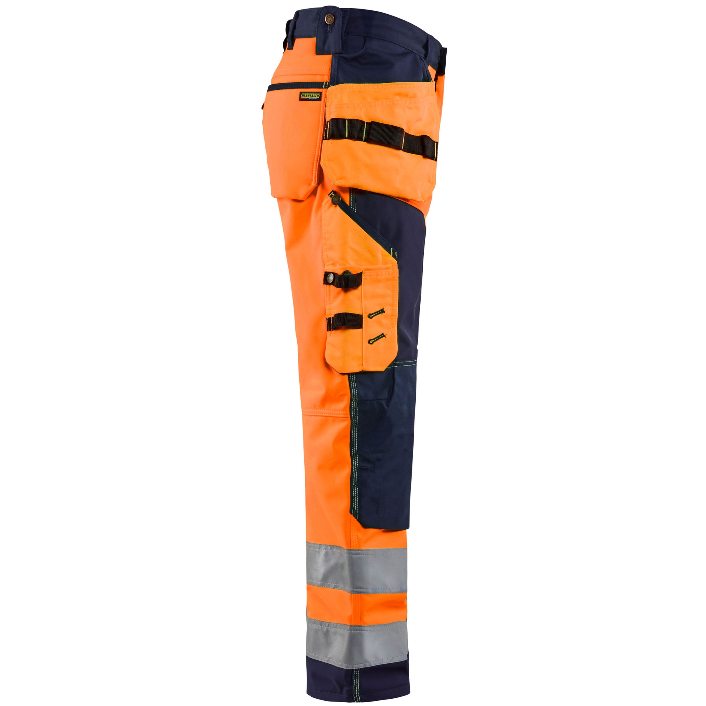 Blaklader 1567 Hi-Vis Orange/Navy Blue Softshell Craftsman Trousers With Holster Pockets