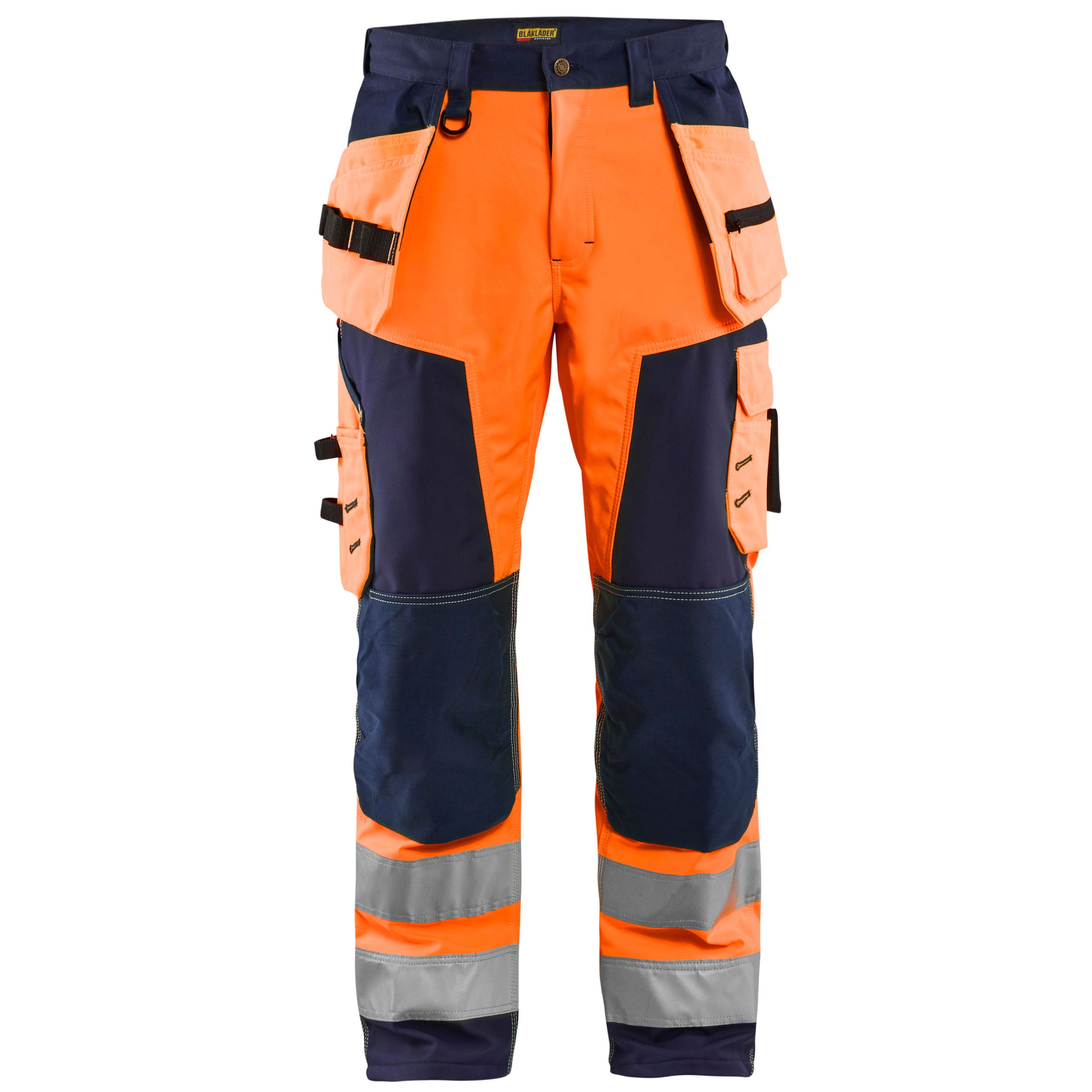 High visibility craftsman trouser in highcomfort and stretchable softshell material. The advanced contemporary fitting in combination with stretchable water and wind repellent softshell-material makes this trouser perfect for outside work in rough weather. Great tear-strength, high abrasion performance and many multi-functional pocket solutions makes the 1567 high visibility craftsman softshell trouser the ultimate choice for hard work on a rough weather day!