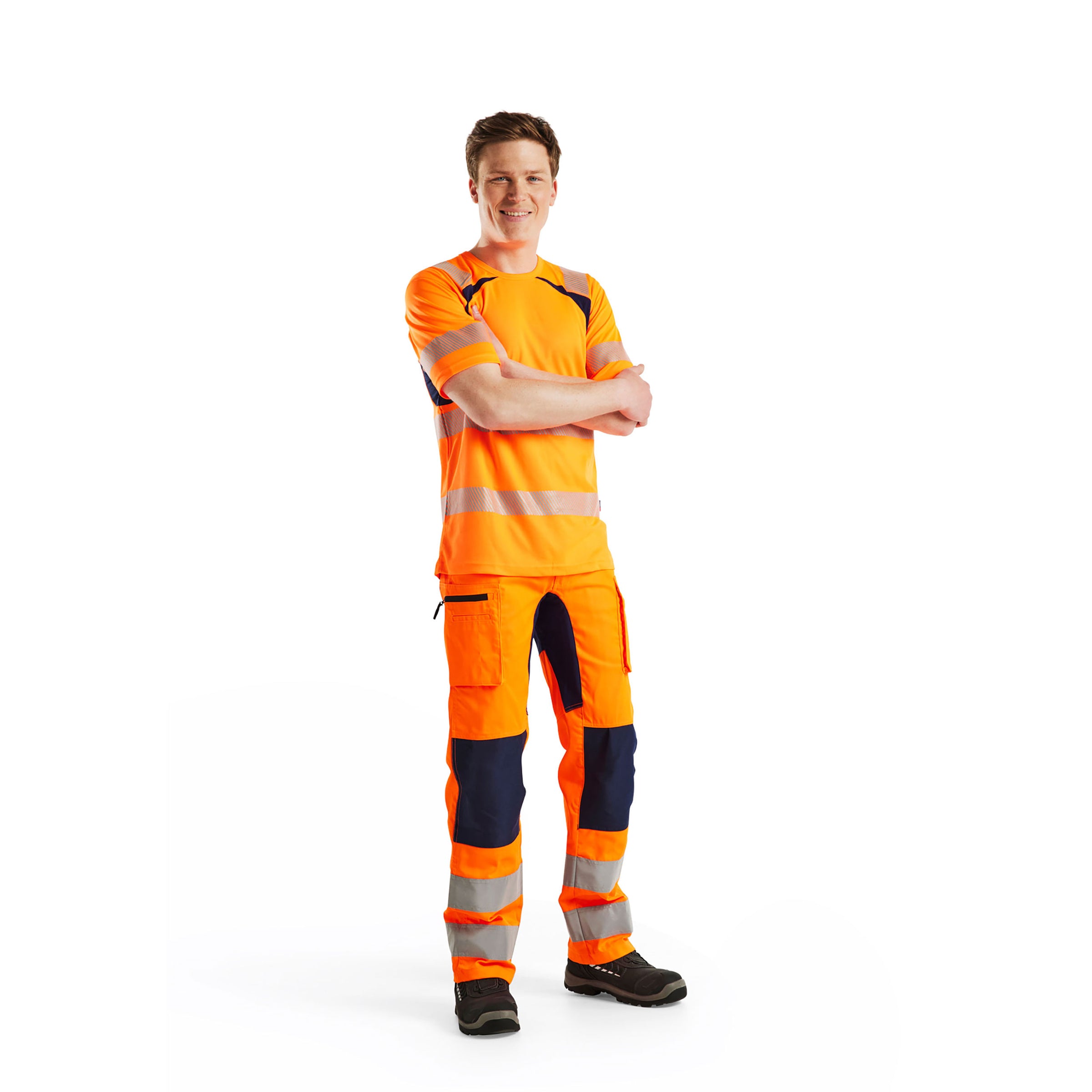 Blaklader 1585 Hi-Vis Orange/Navy Blue Trousers With Stretch