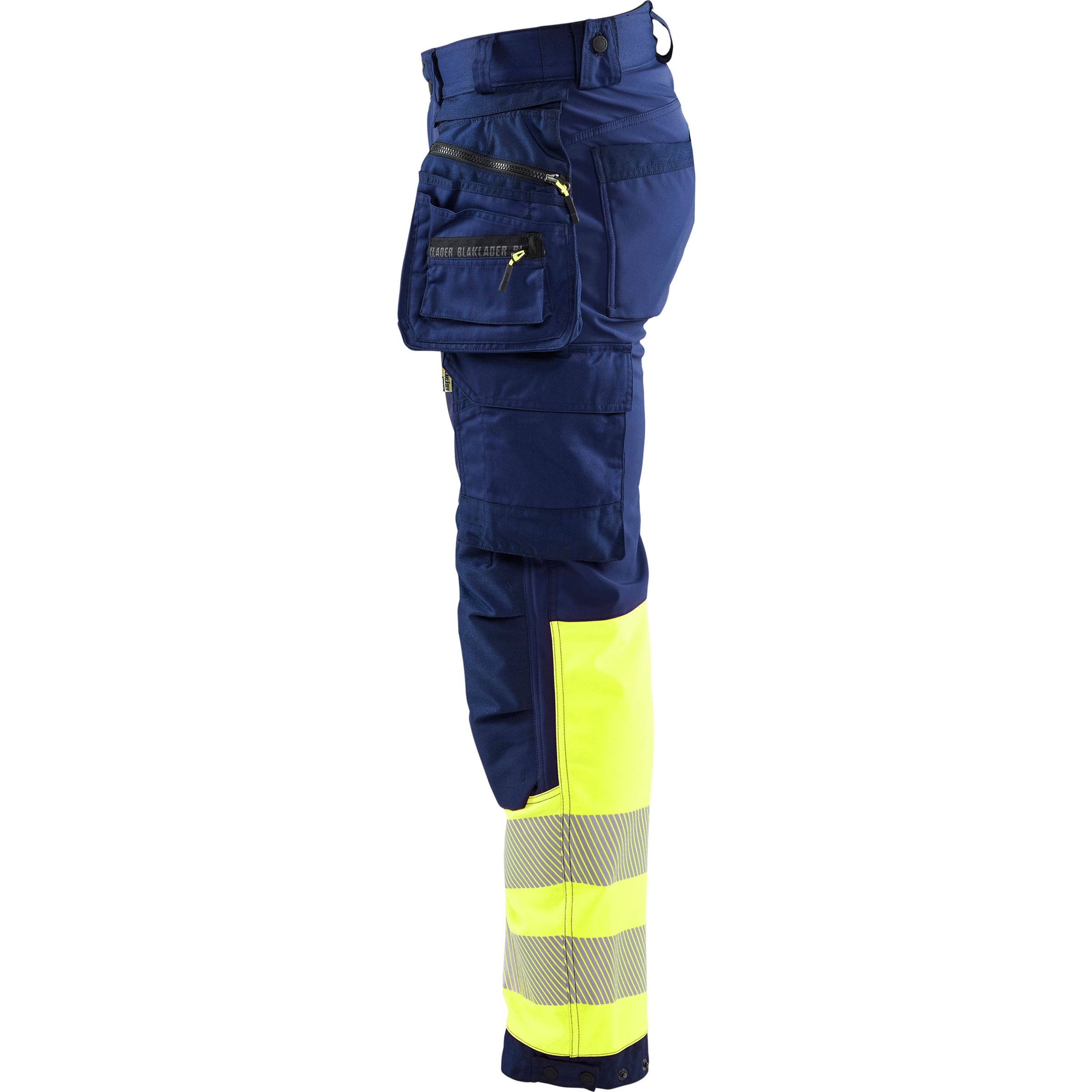 Blaklader 1821 Navy Blue/Hi-Vis Yellow Softshell Trousers With Holster Pockets