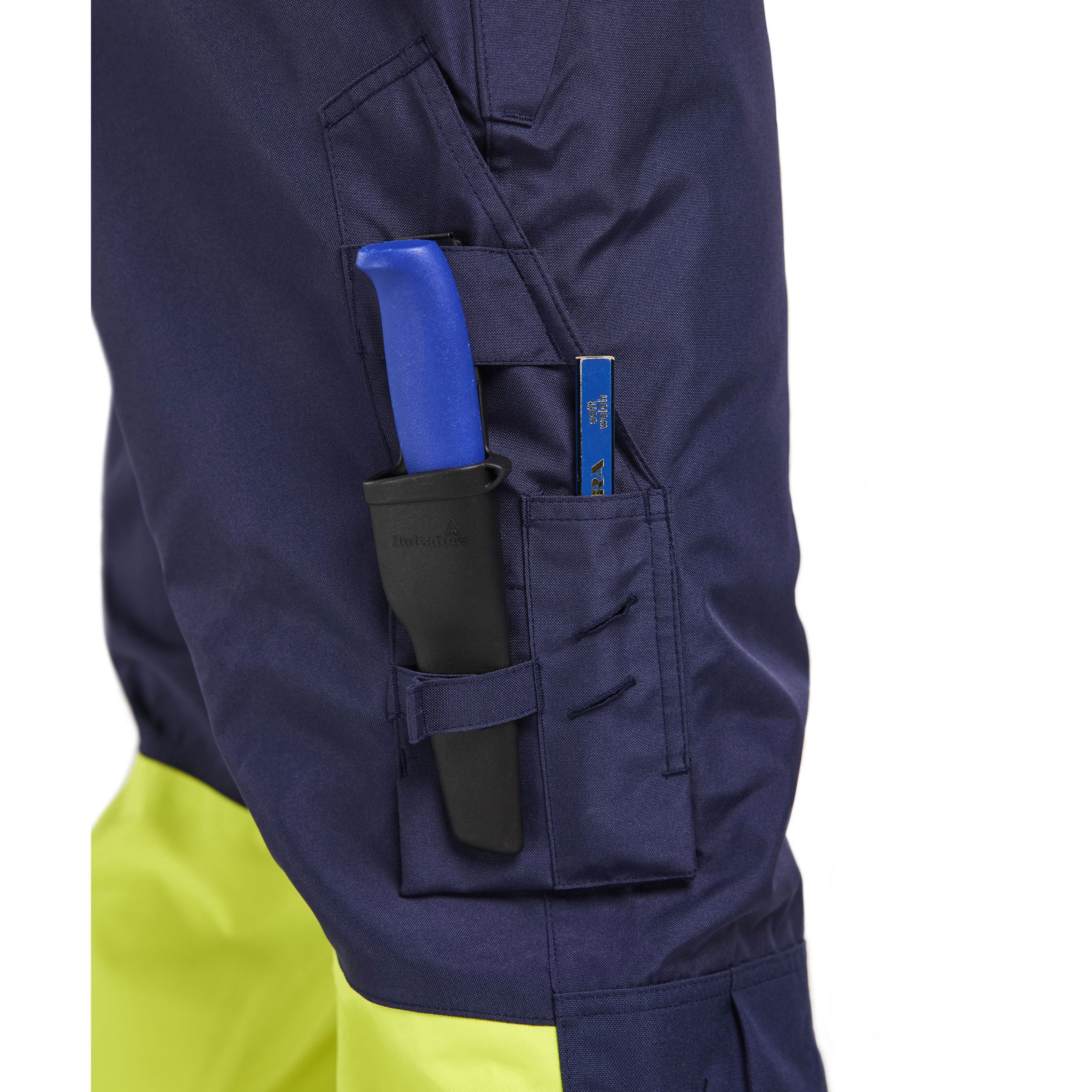 Blaklader 1877 Navy Blue/Hi-Vis Yellow Shell Trousers With Holster Pockets