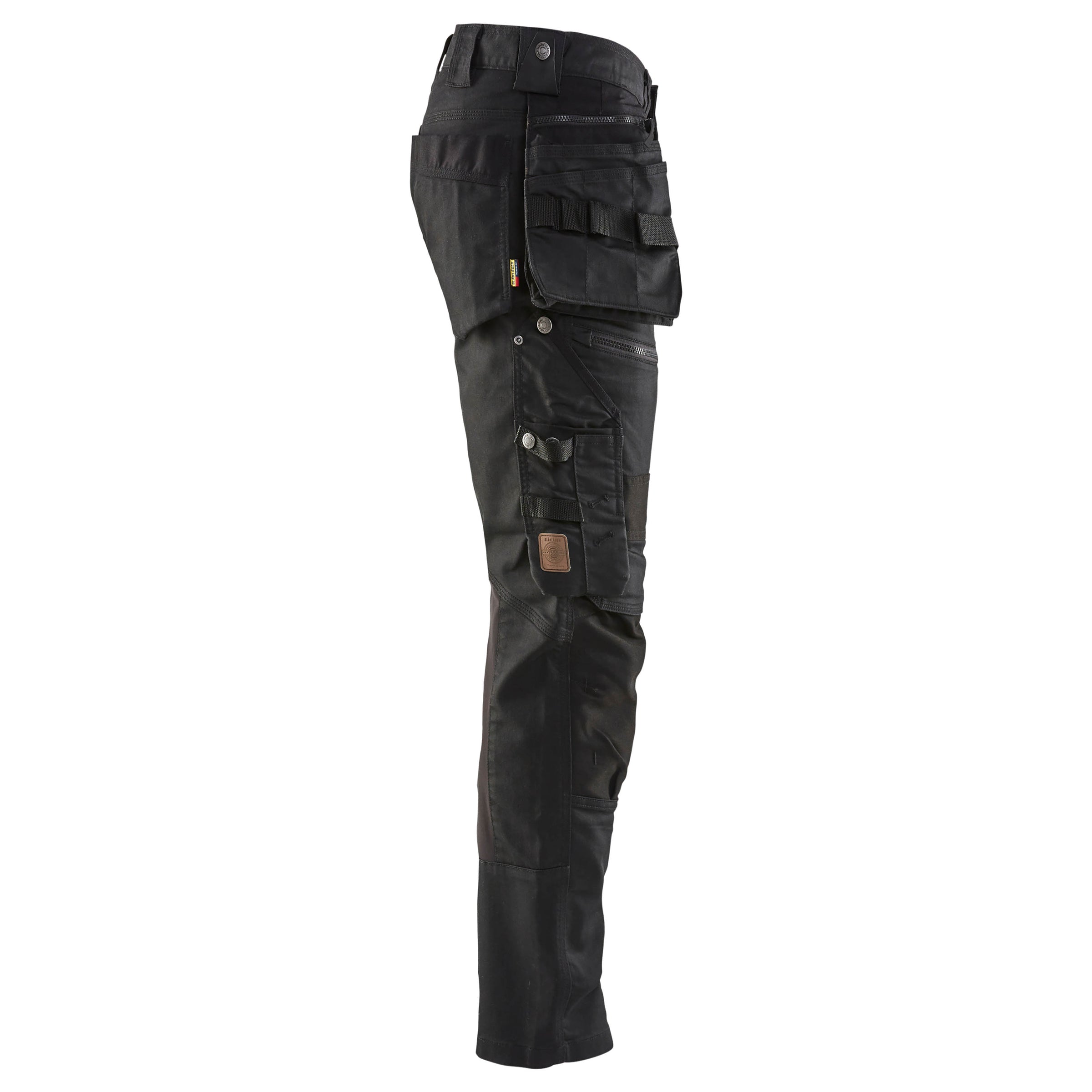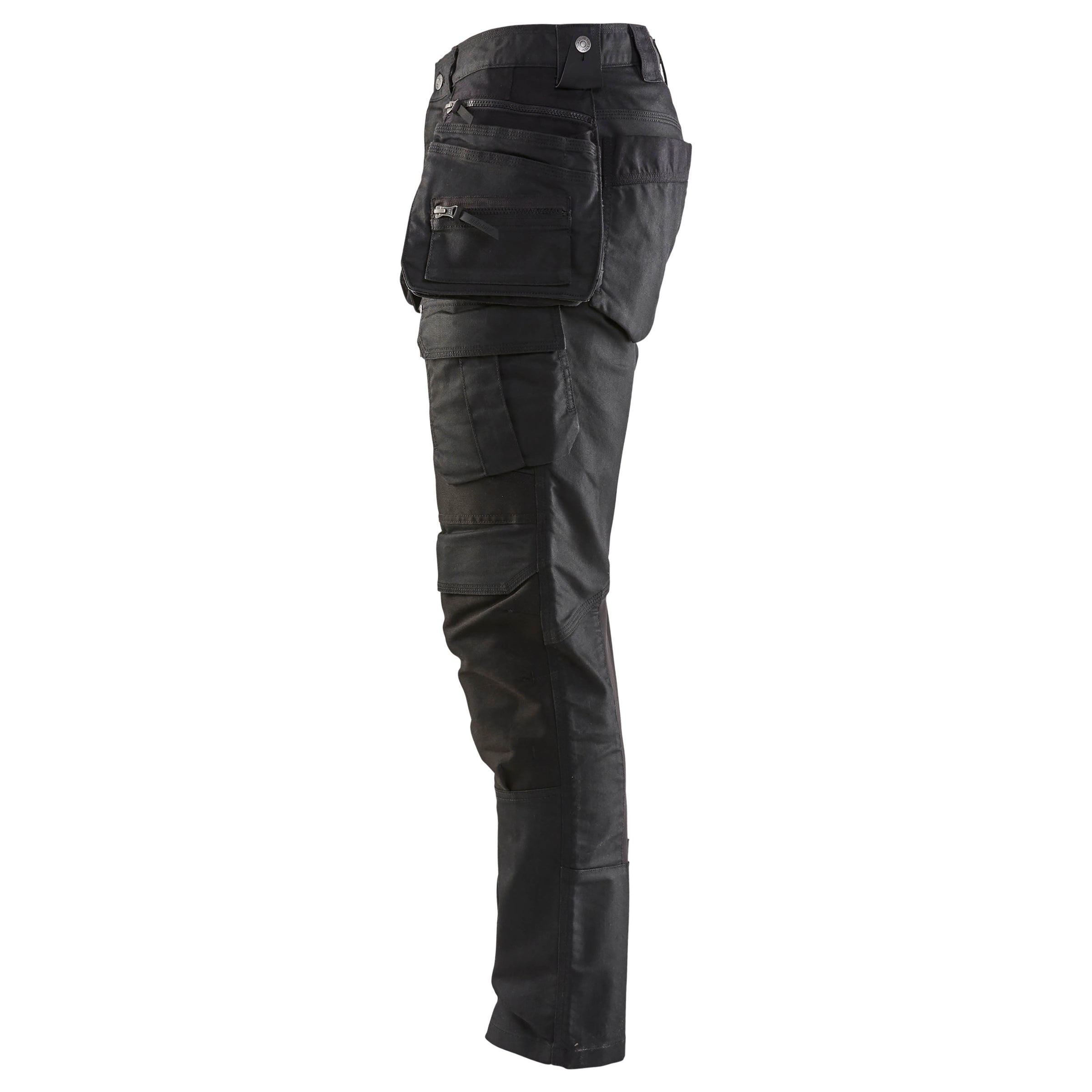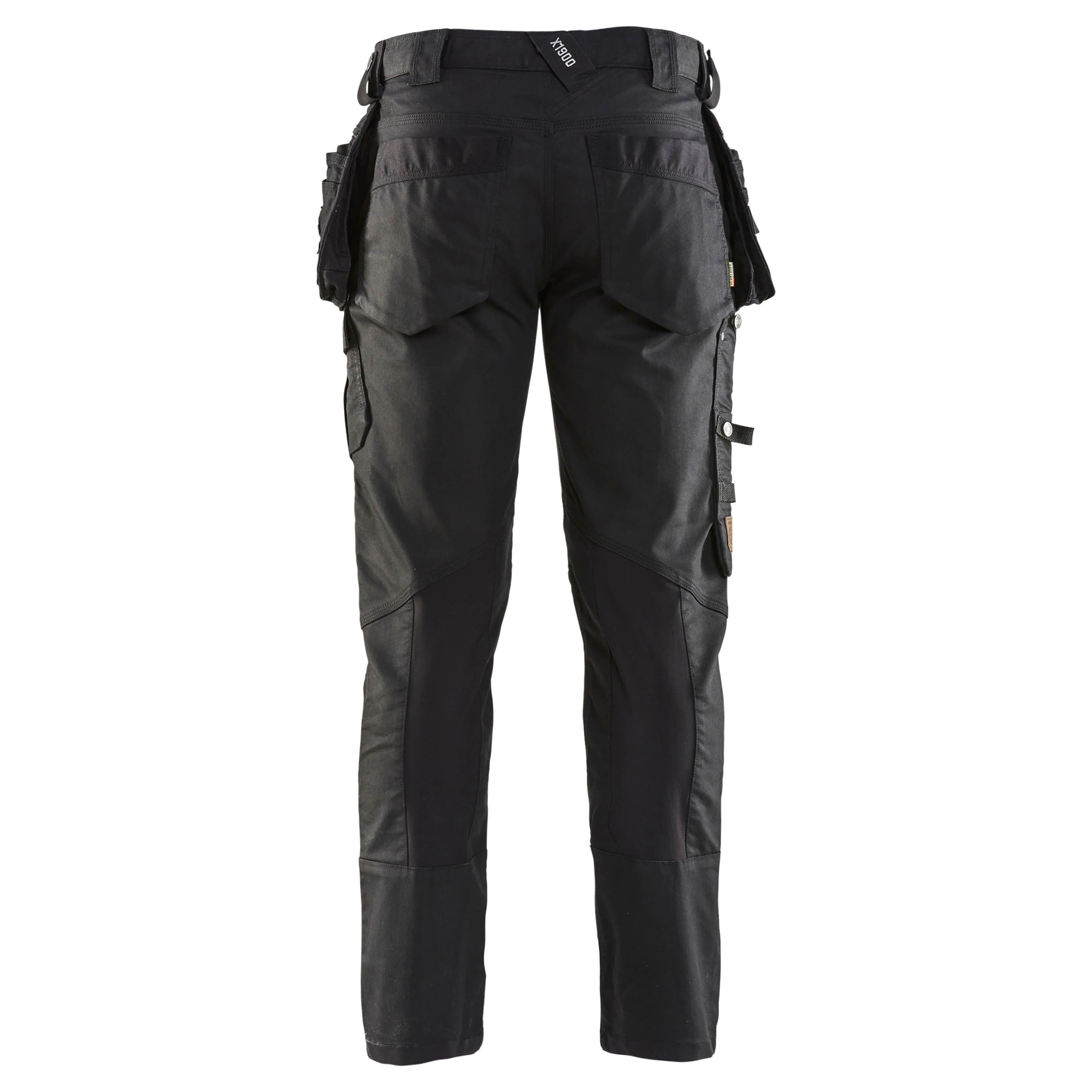Durable CORDURA® stretch denim. CORDURA® 1000-reinforced pockets. Stretch panel in the crotch and calvesCORDURA® stretch-reinforced knee pad pockets. Extra wide tool pockets.