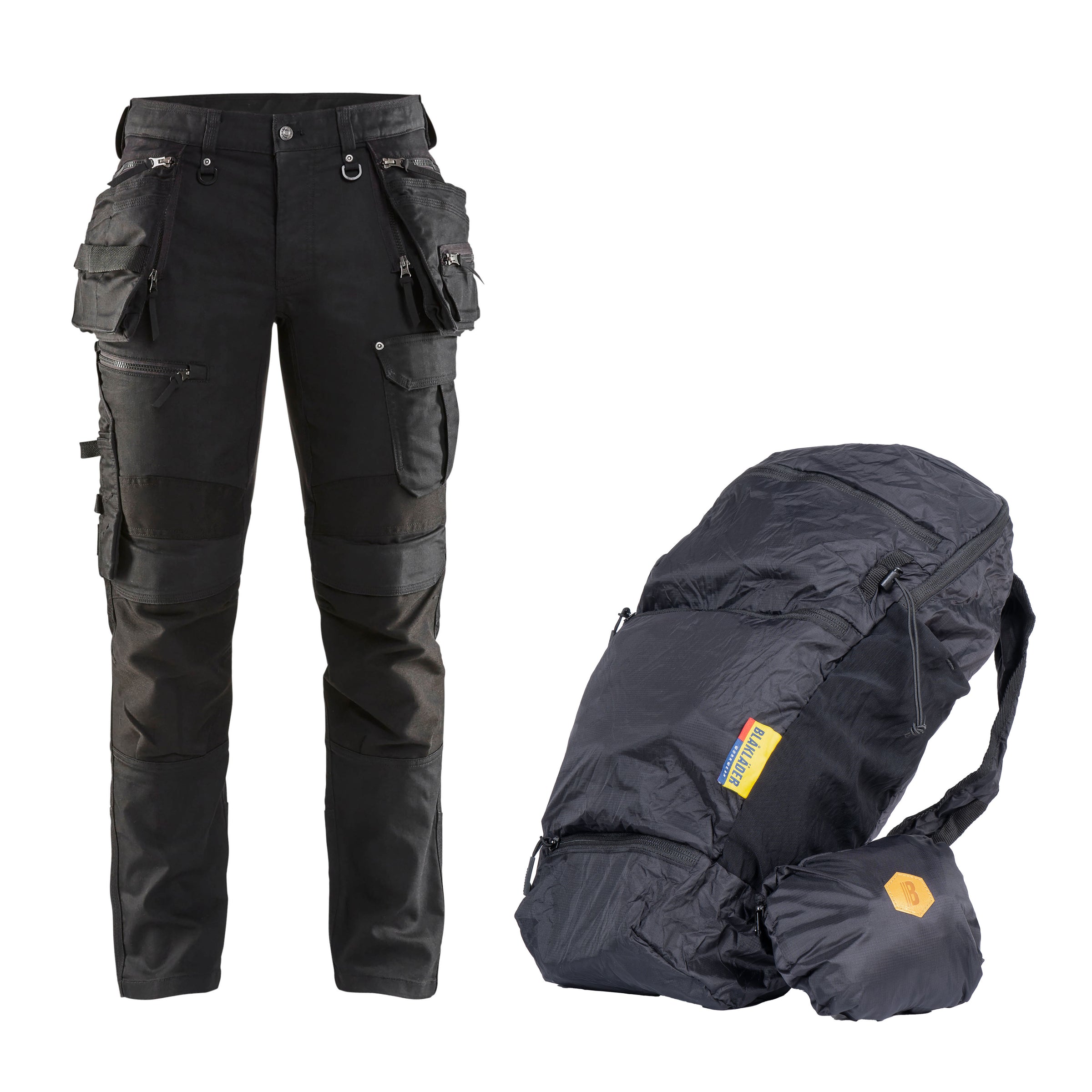Blaklader Bundle: 1990 Black/Black Craftsman Trousers Stretch X1900 + Free Backpack