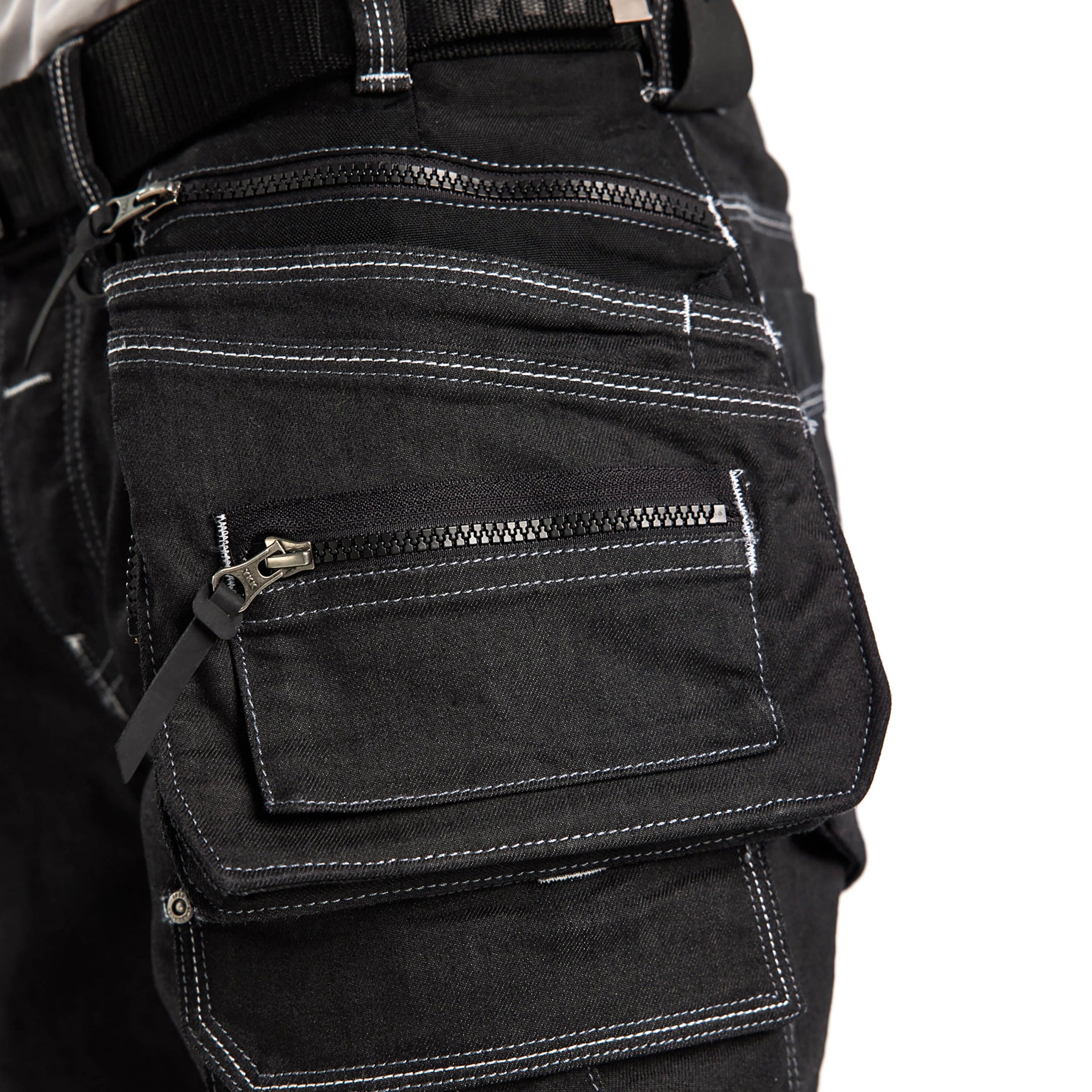 Durable CORDURA® stretch denimCORDURA® 1000-reinforced pocketsStretch panel in the crotch and calvesCORDURA® stretch-reinforced knee pad pocketsExtra wide tool pockets