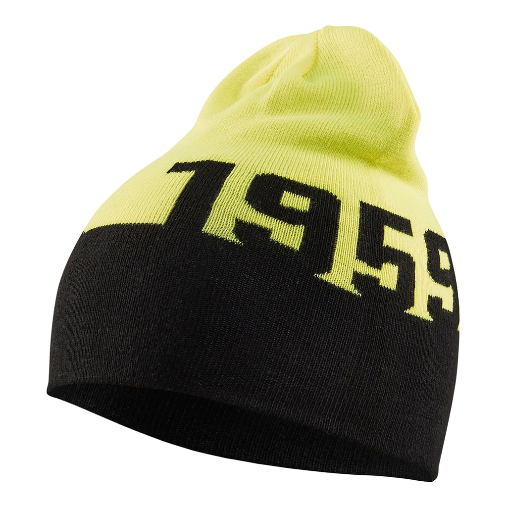 Children's version of beanie 2056 which is available only in highvis colors for increased visibility. The hat is reversible if you prefer a more discreet look. The original side is embellished with the text 'BLK 1959' in large format, and on the inside the same text is fixed in a much smaller format.
