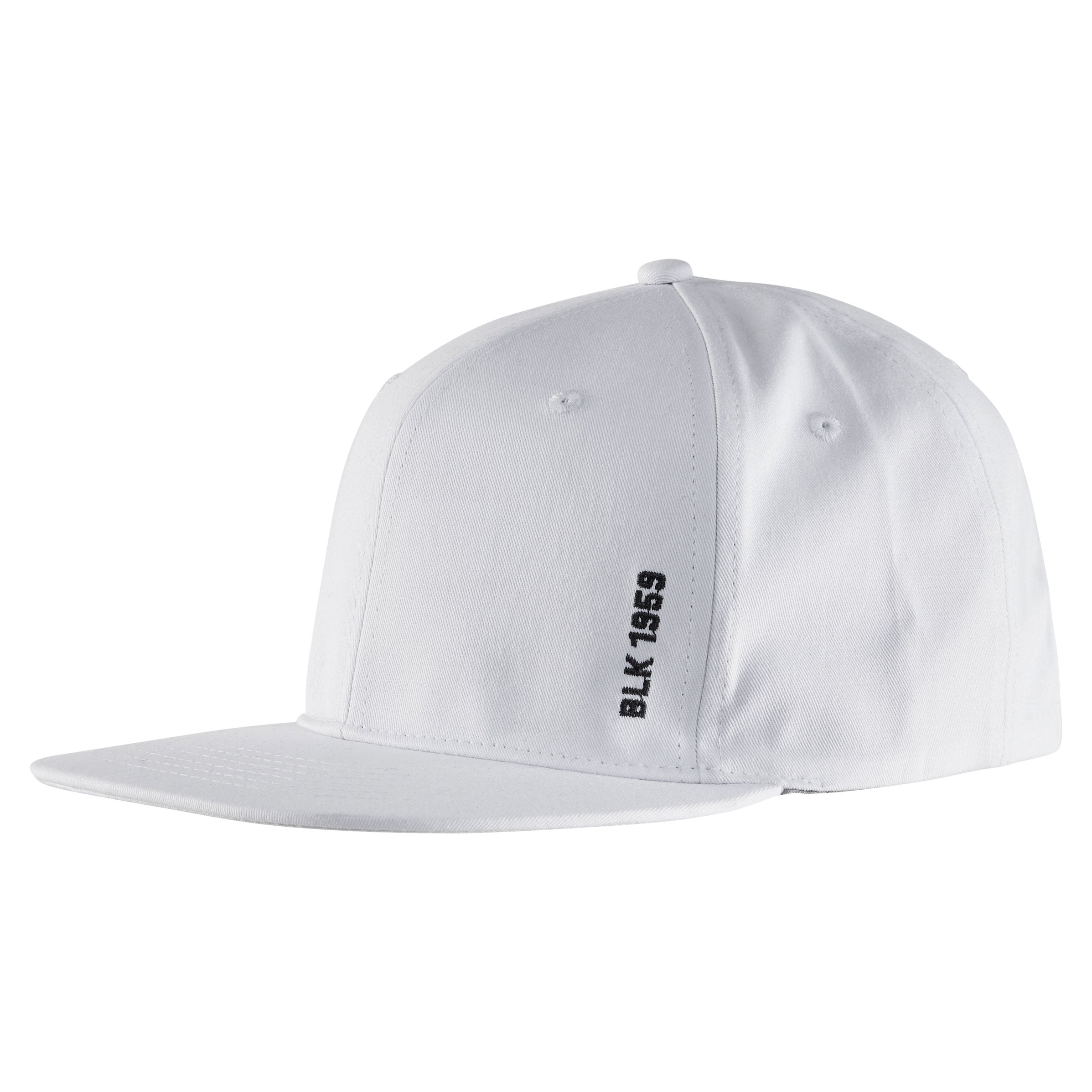 Nice white-cotton cap with flat brim and snapback, specially designed for painters. Comes with discreet embroidery 'BLK 1959' and provides very good decal surfaces both front and back to anyone who wants it.