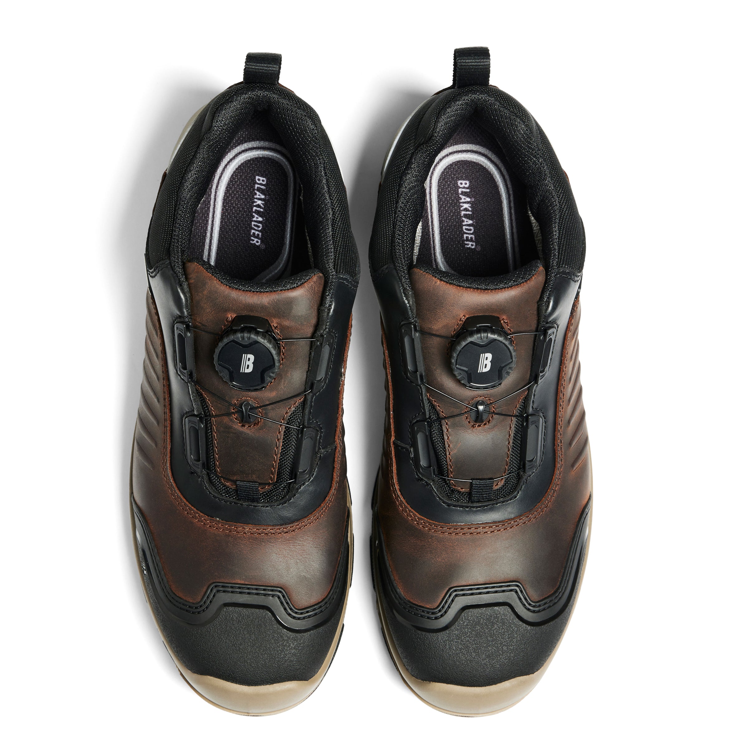A durable and waterproof safety shoe from Blåkläder’s STORM collection. This shoe in high-quality leather offers excellent comfort and high protection. Composite toecap with extra TPU protection on the toe and a soft, flexible penetration resistant midsole that withstands the tough demands of 3 mm nails (PS). The friction outsole in nitrile rubber is developed to provide a good grip even on snow and ice. The insole, with anatomical support, is made of a soft PU material covered with a textile surface with good moisture absorption. The membrane will keep you dry throughout the day, and the Freelock system makes jumping in and out of the shoe easy. Best suited for outdoor work within building and construction, transport, maintenance, repair and operation. Women´s last in UK sizes 2-6.
