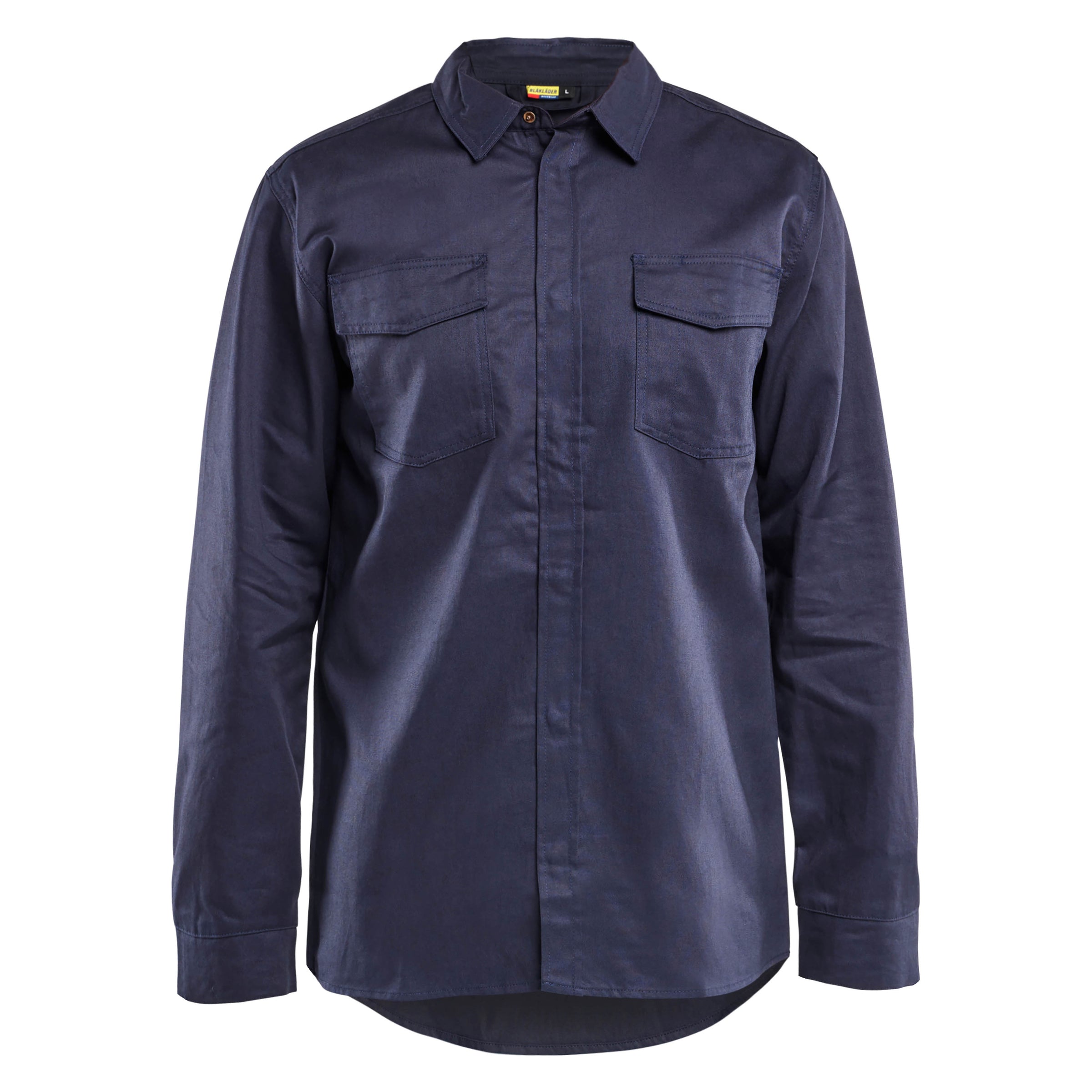 Functional flame resistant men's shirt for exposed environments. This flame resistant shirt is specifically suitable for working environments where flame resistance is needed. Smart, functional design with concealed buttons at the front and quick-release function. The material is comfortable with a generous fit and good freedom of movement. This shirt has two breast pockets with a practical pen holder. ·Certified to EN 1149-5, EN ISO 11612, IEC 61482-2.