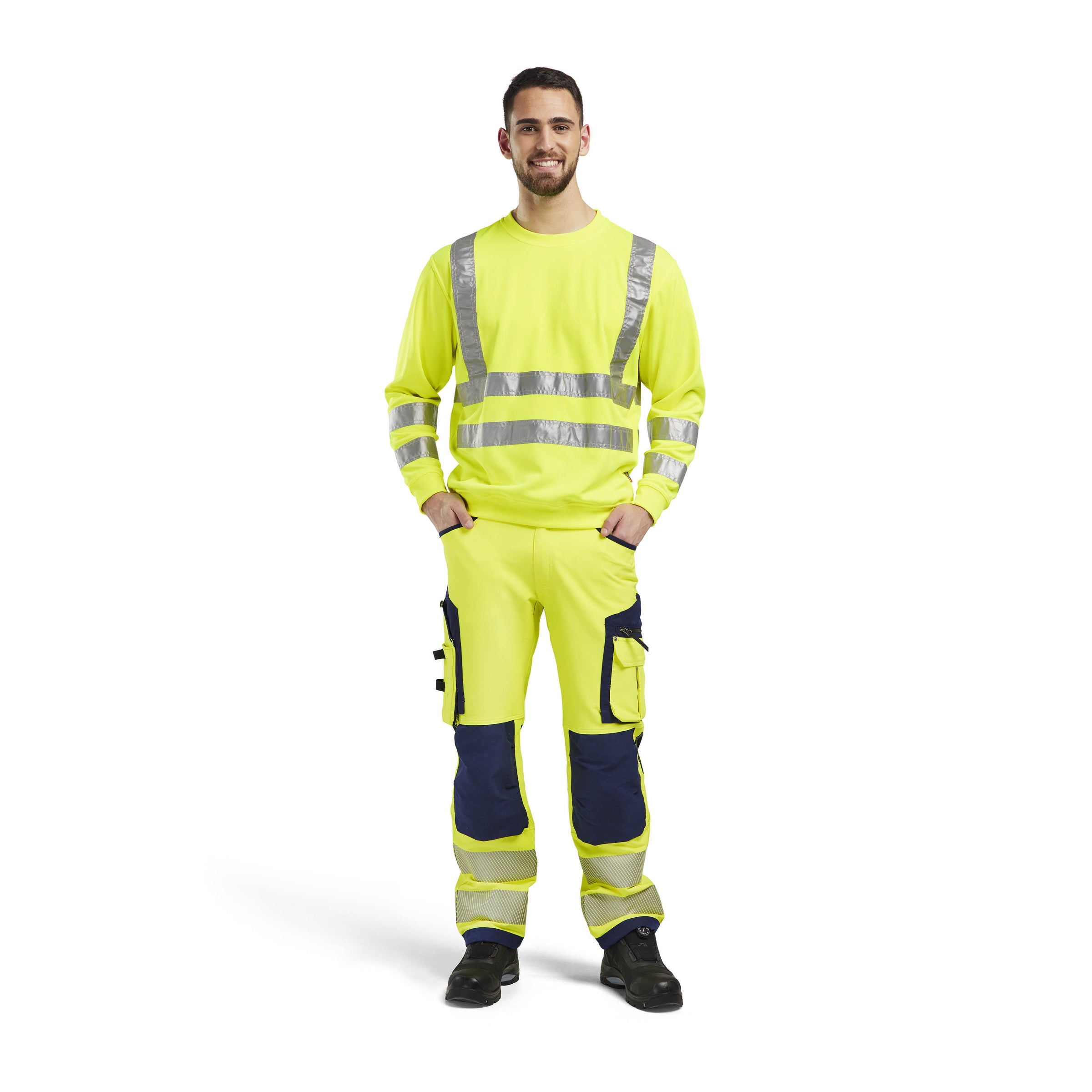 Standout in this Hi-Vis sweatshirt! The sweatshirt has reinforced neck and shoulder seams and knitted ribbed cuffs. 50 mm reflector trim. Certified according to EN ISO 20471, XXS-S Class 2 M-4XL Class 3, High visibility protective clothing.