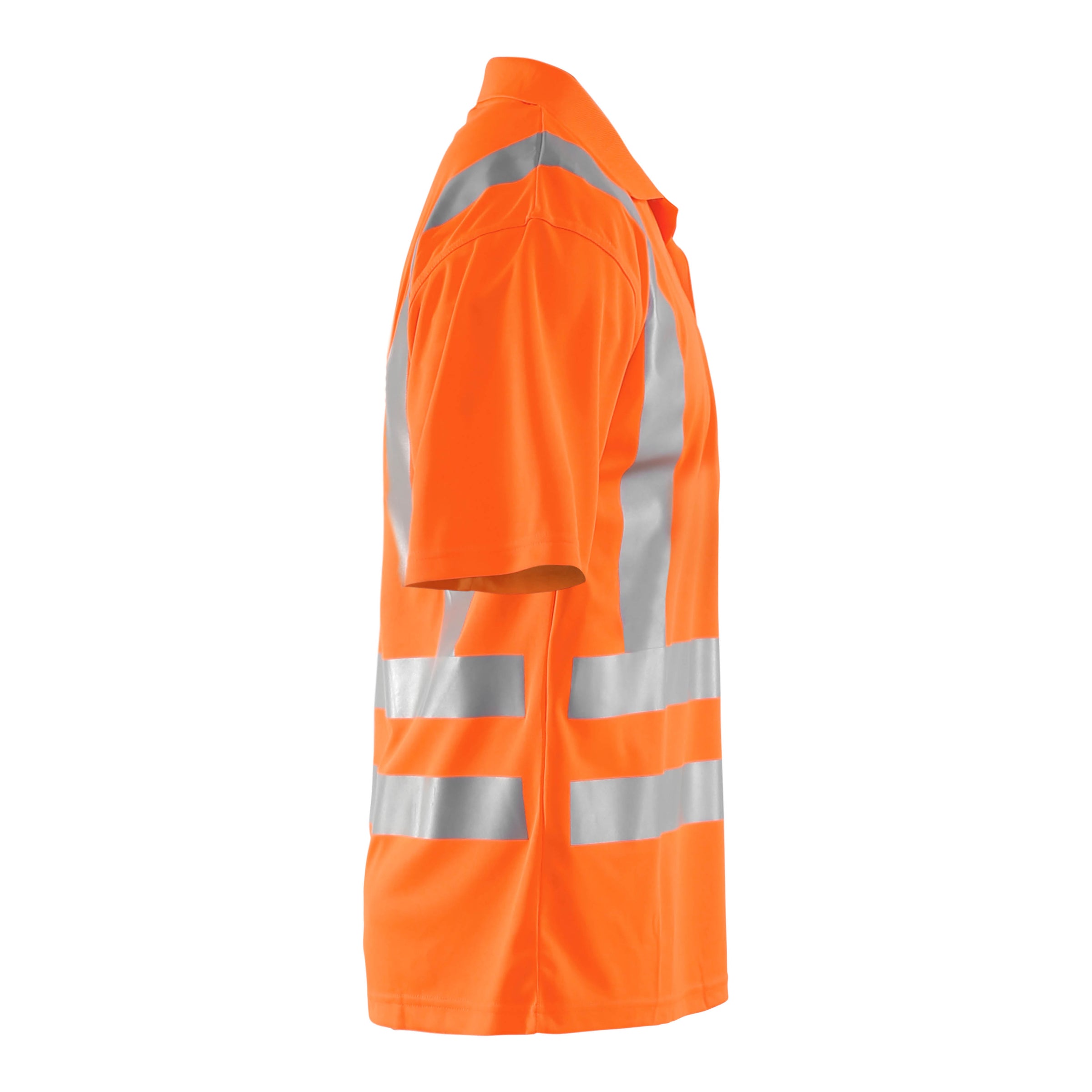 Comfortable Hi-Vis polo shirt with ribbed collar. Reinforced neck and shoulder seams. Light weight knitted fabric with structure for ventilation. Wicking properties for a comfortable and dry feeling against the body. Certified according to EN ISO 20471 class 2, increasing visibility when working in harsh environments and EN 13758-2 UPF 40+ Solar UV Protective Properties.