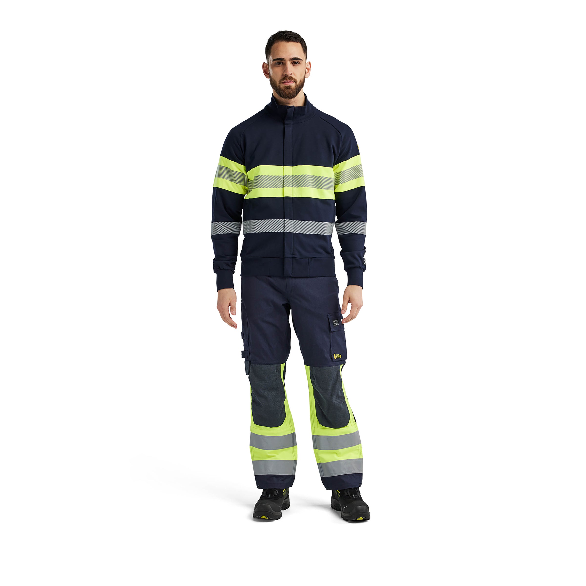 Blaklader 3462 Navy Blue/Hi-Vis Yellow Arc Flash & Fire Retardant Multinorm Sweatshirt With Zip
