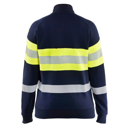Blaklader 3472 Navy Blue/Hi-Vis Yellow Women’s Arc Flash & Fire Retardant Multinorm Sweatshirt With Zipper