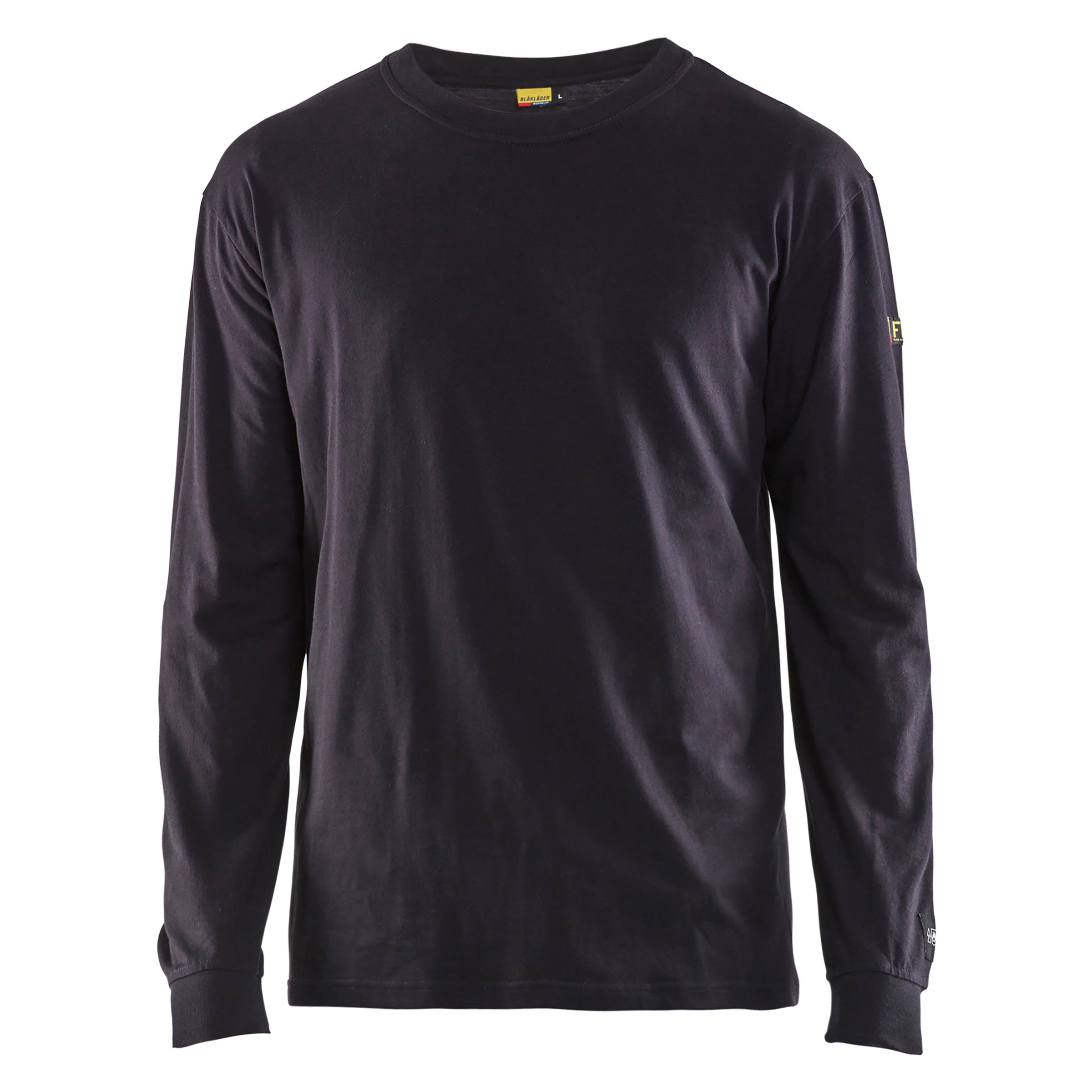 Flame resistant long-sleeve t-shirt in a thin fabric that is extremely comfortable. Round neckline, reinforced neck and shoulder seams, and cuffs. Certified under EN 1149-5, EN ISO 11612, IEC 61482-2. EBT: 6,4cal/cm².