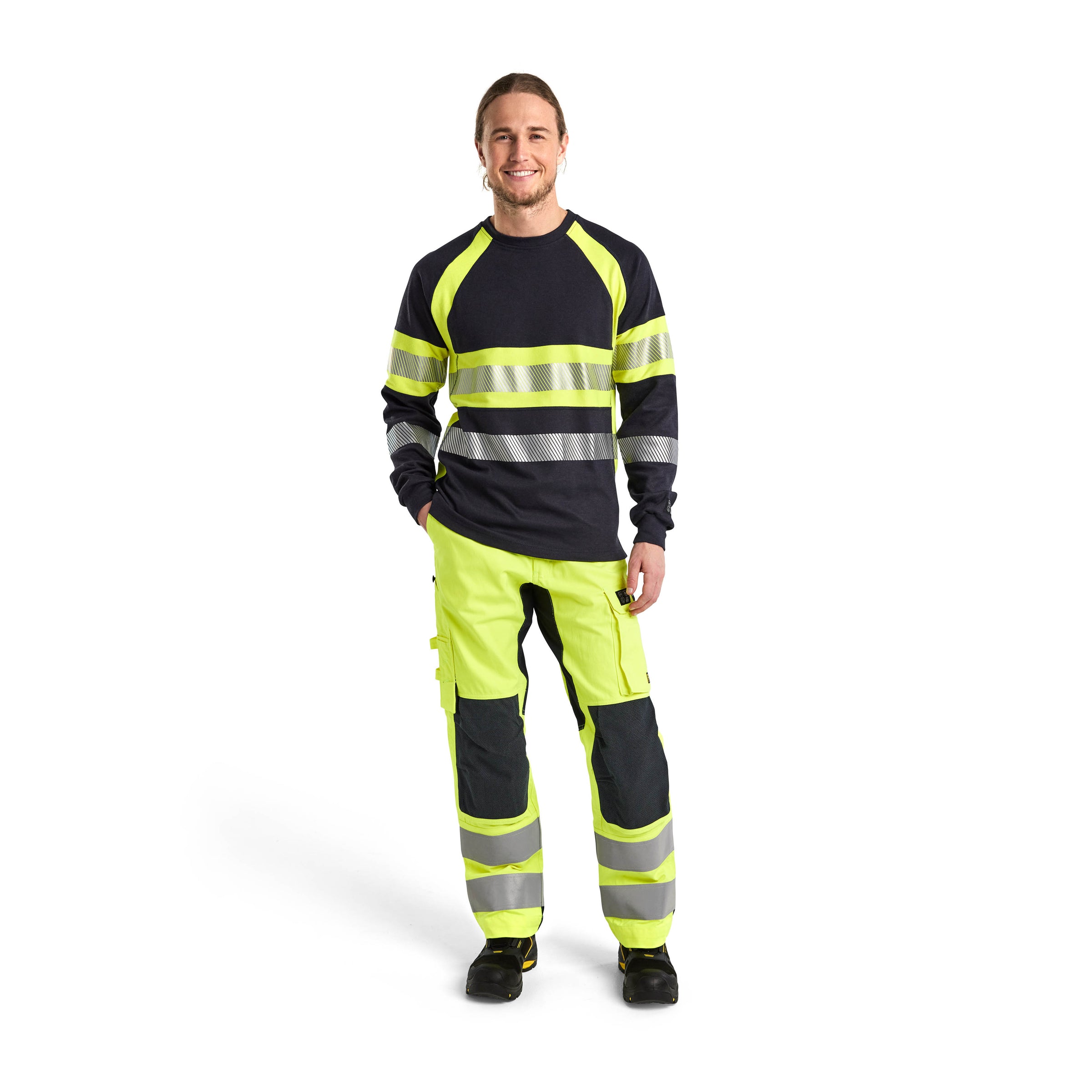 Blaklader 3484 Navy Blue/Hi-Vis Yellow Flame Resistant Long Sleeve T-Shirt