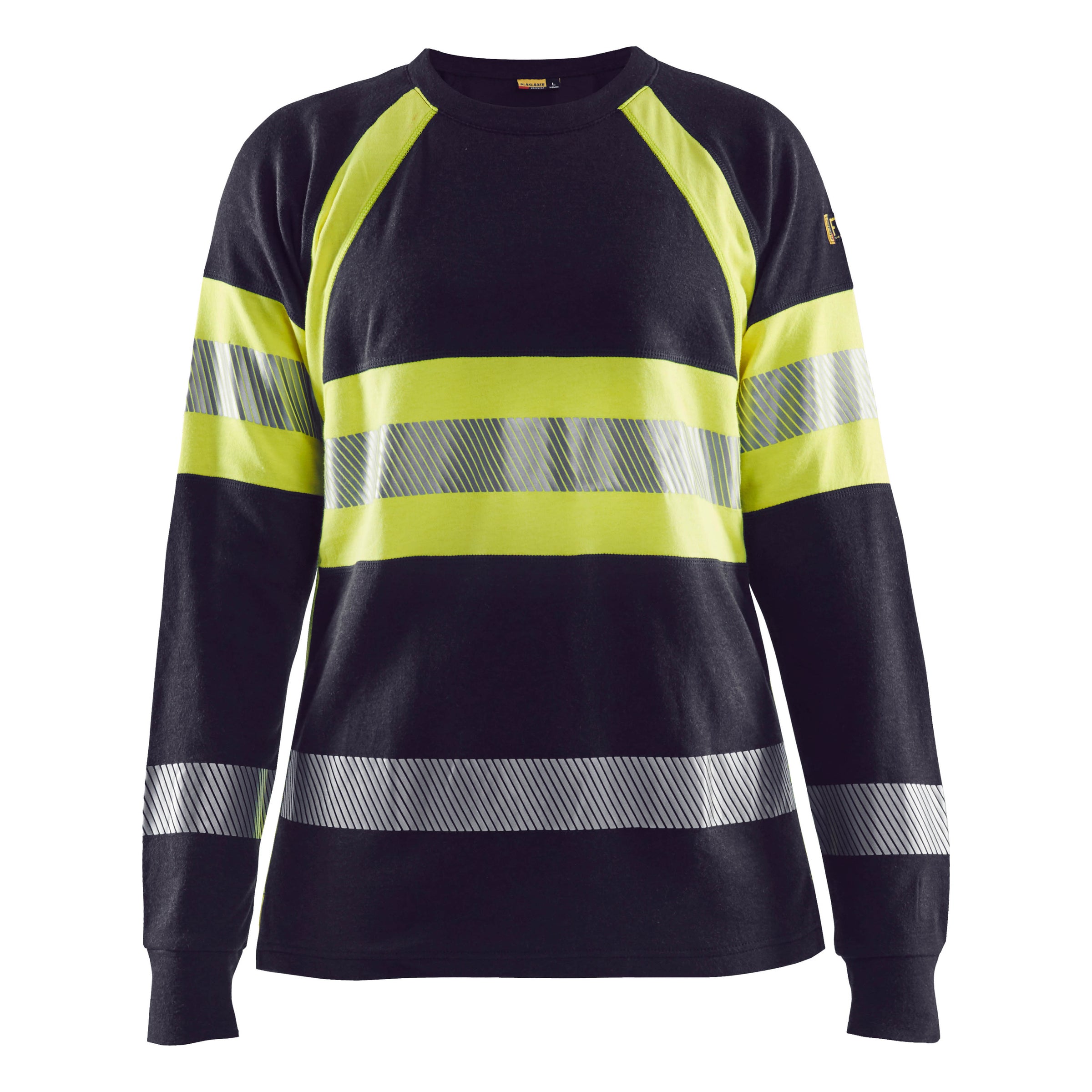 Blaklader 3494 Navy Blue/Hi-Vis Yellow Women's Flame Resistant T-Shirt Long Sleeve
