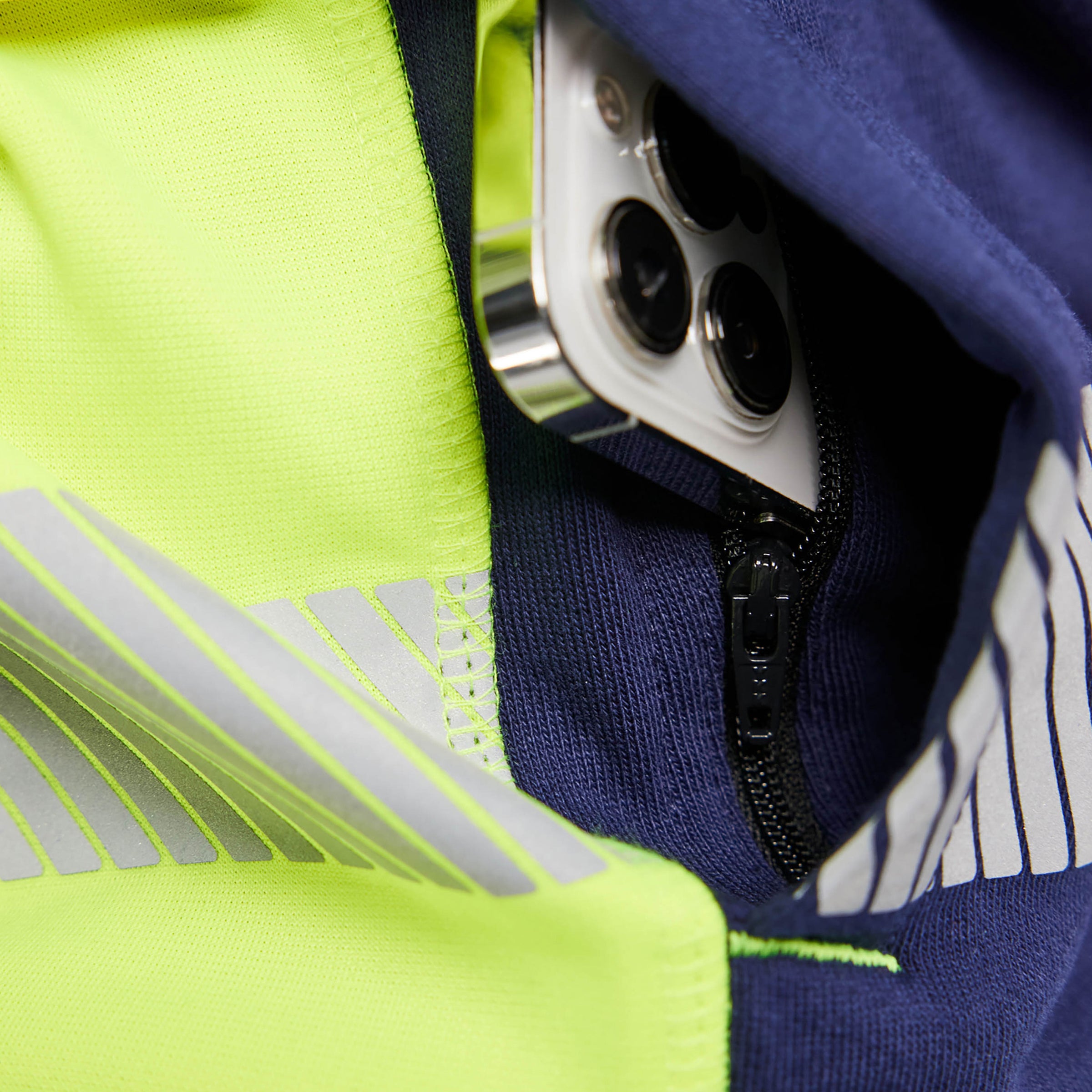 A soft, comfy hi-vis sweatshirt in wonderful quality cotton with cut reflective transfers for extra good stretch and breathability properties. Featuring a women’s fit, side pockets, high collar, full zip at the front and cuffs at the bottom and sleeve ends for added comfort. The sweatshirt’s dark section is 100 per cent cotton, and the hi-vis section is 100 per cent polyester. Also available in a men’s model 3551.