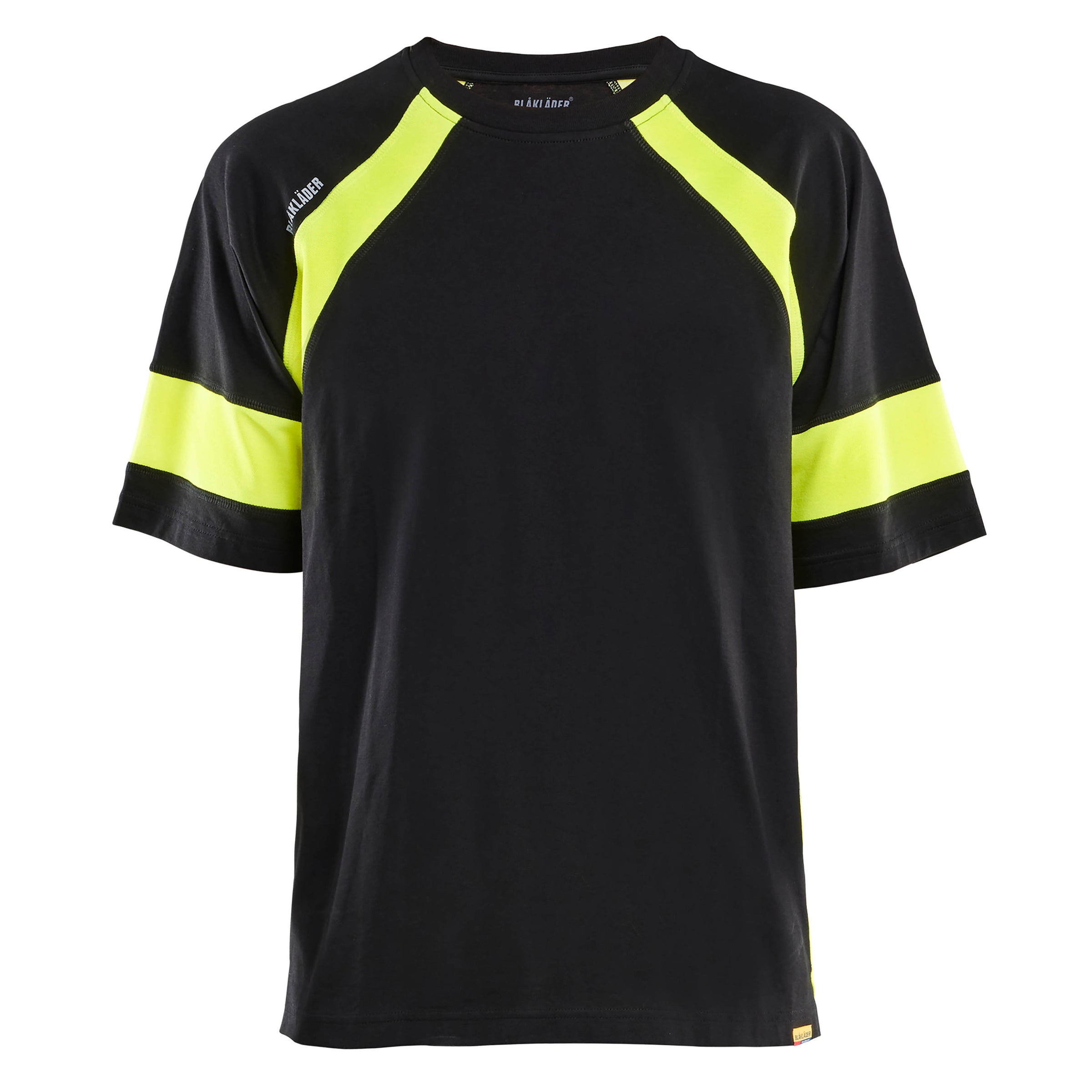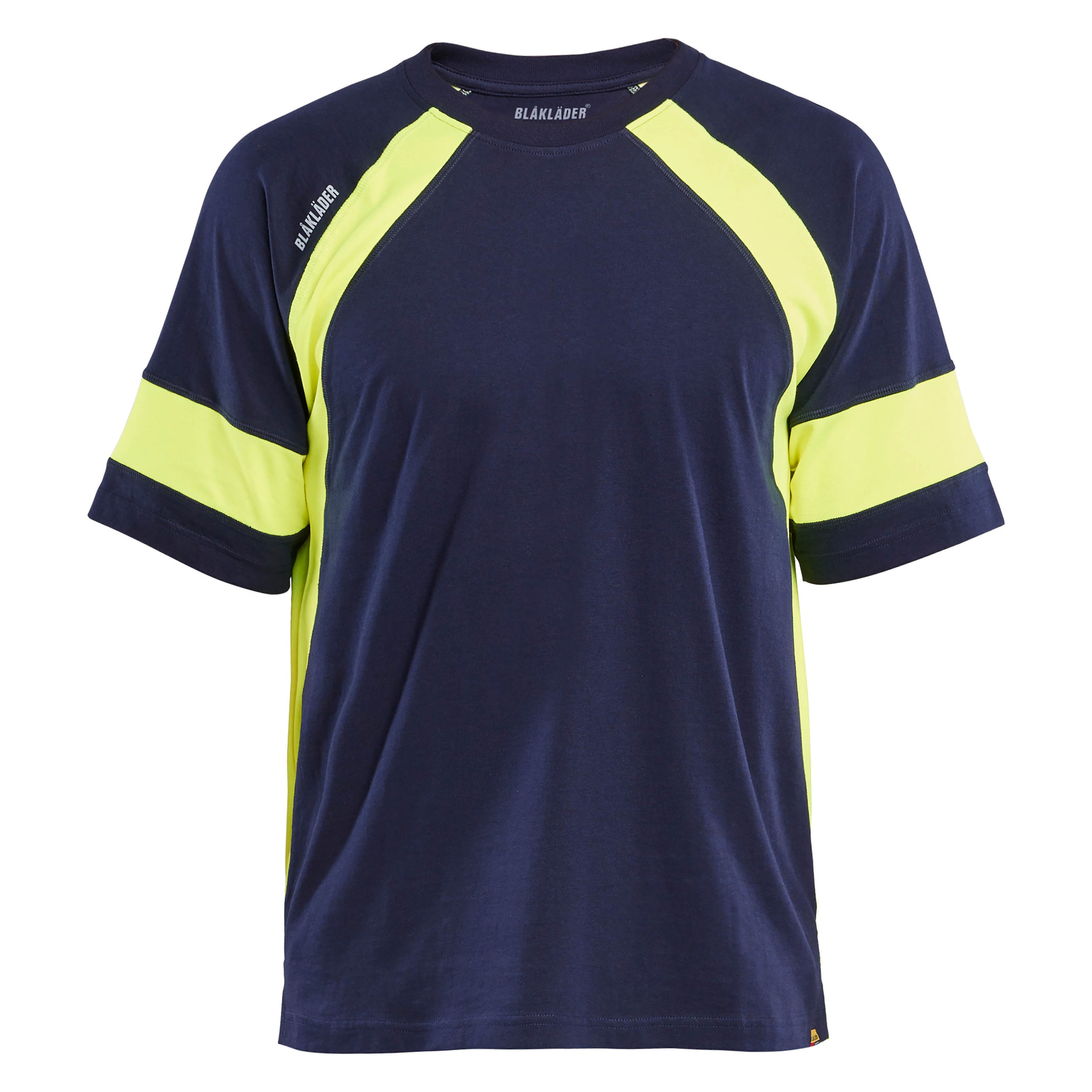 Cotton T-shirt with yellow hi-vis sections for good visibility. Ideal in industries where reflectors on workwear are not allowed. Also available in a women's model 3524.