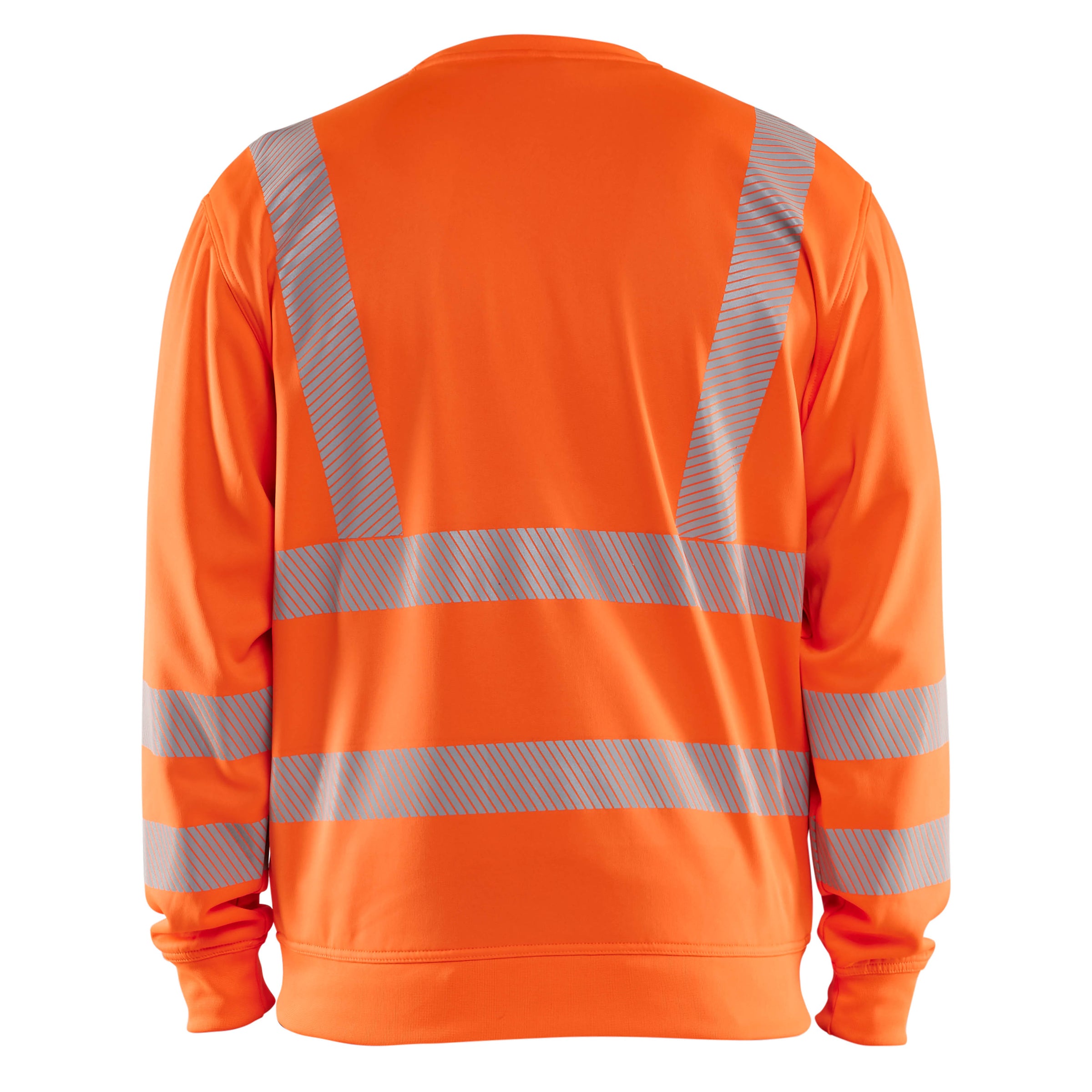 Round neck sweatshirt in class 3 Hi-vis with segmented reflective tape for extra visibility. The Hi-vis sweater's material is a soft and lovely fleece that provides an unbeatable combination of safety and comfort. It has ribbed cuffs and can be industrially washed. Certified according to EN ISO 20471 Class 3. Industrial laundry EN ISO 15797.