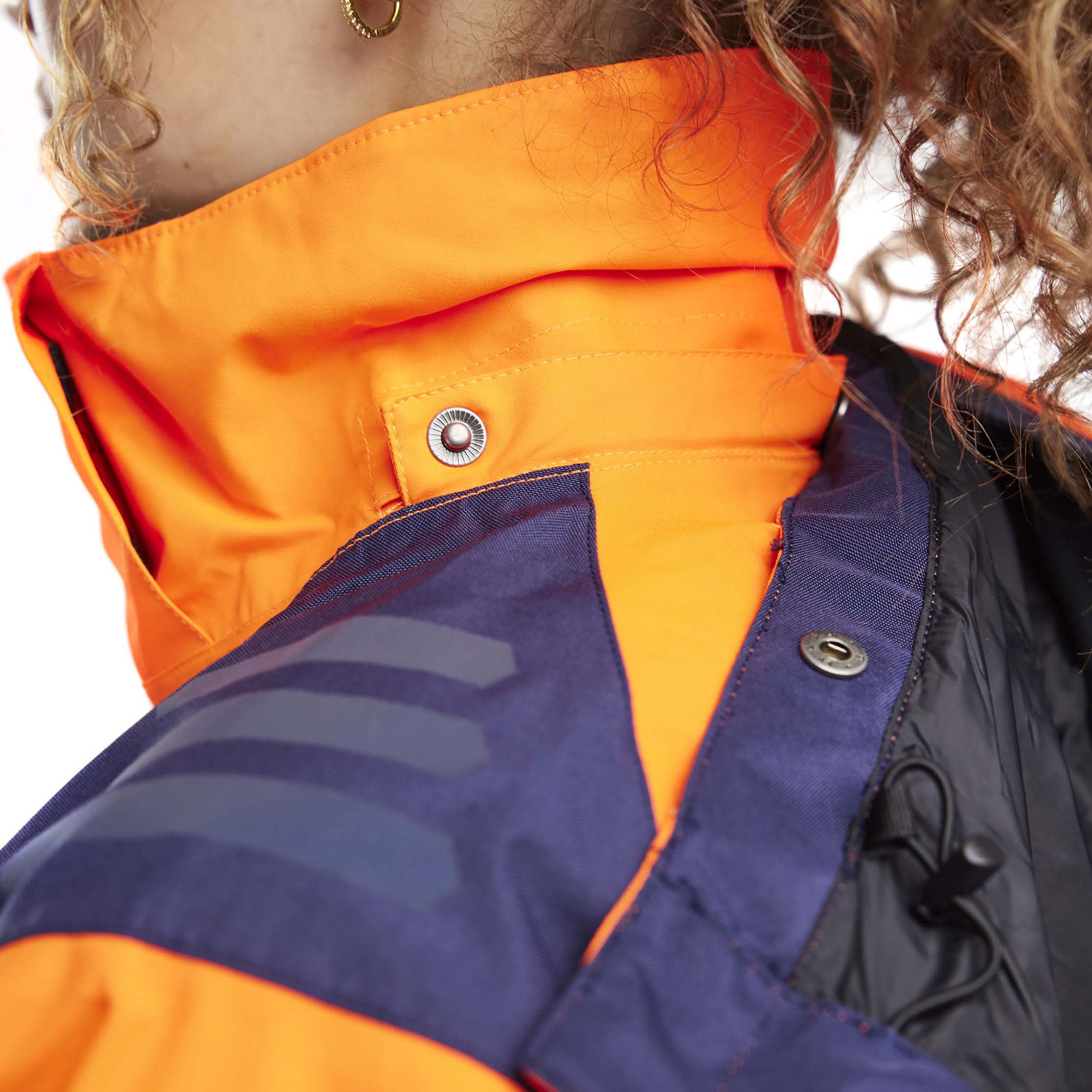 Shell jacket in a women’s cut, Class 2 hi-vis, keeping you visible when you need it most. The jacket is wind and waterproof with taped seams, and the hood is detachable and adapted for helmets and ear defenders. Two-way zip at the front and ventilation in the back. Also available in a men’s model 4435. 0