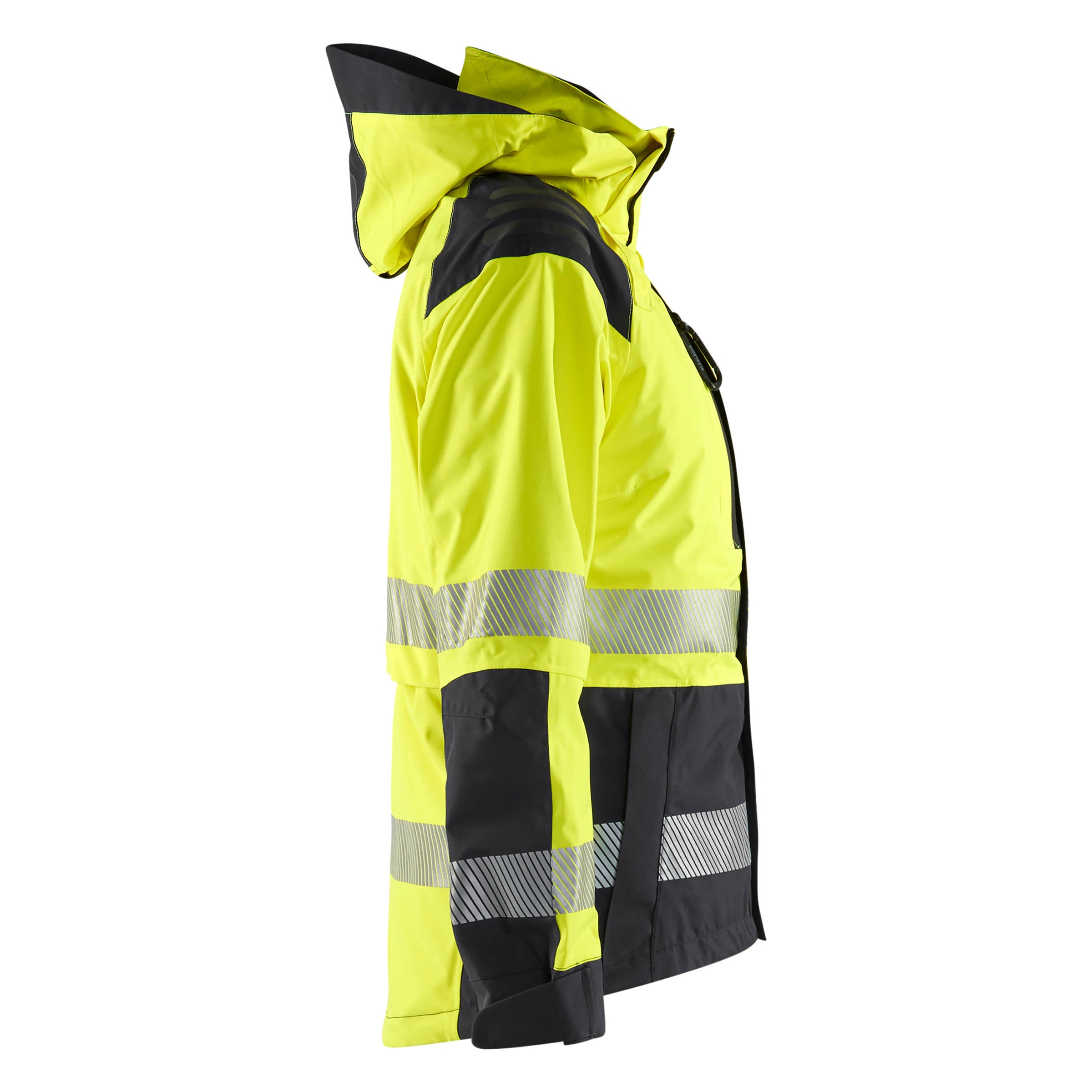 Shell jacket in a women’s cut, Class 2 hi-vis, keeping you visible when you need it most. The jacket is wind and waterproof with taped seams, and the hood is detachable and adapted for helmets and ear defenders. Two-way zip at the front and ventilation in the back. Also available in a men’s model 4435. 0